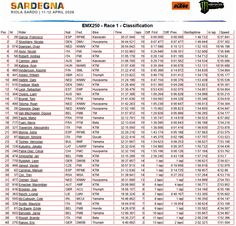 Retrouvez les résultats du GP de Sardaigne – Jour #2 – ci-dessous.