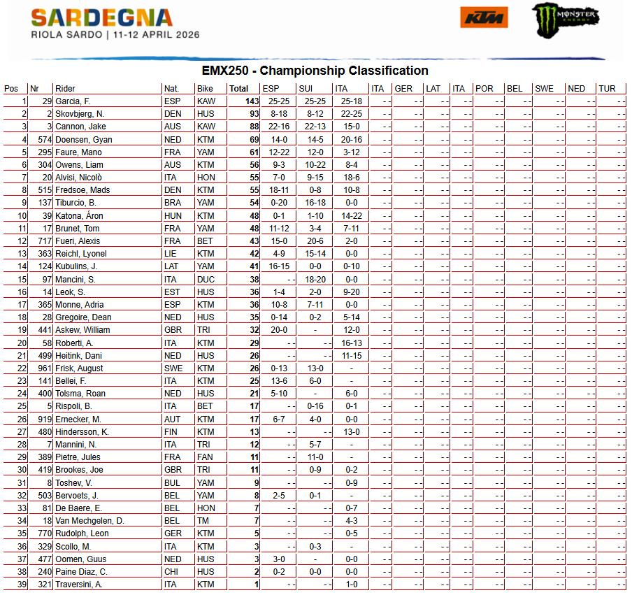 Si le scénario diffère en MX2 comme en MXGP, avec les victoires de Sacha Coenen et Jeffrey Herlings, Simon Langenfelder et Lucas Coenen conservent la tête de leur catégorie respective avant les choses sérieuses.
