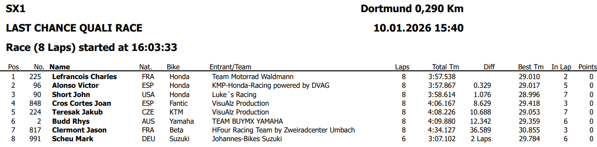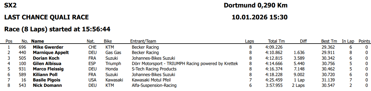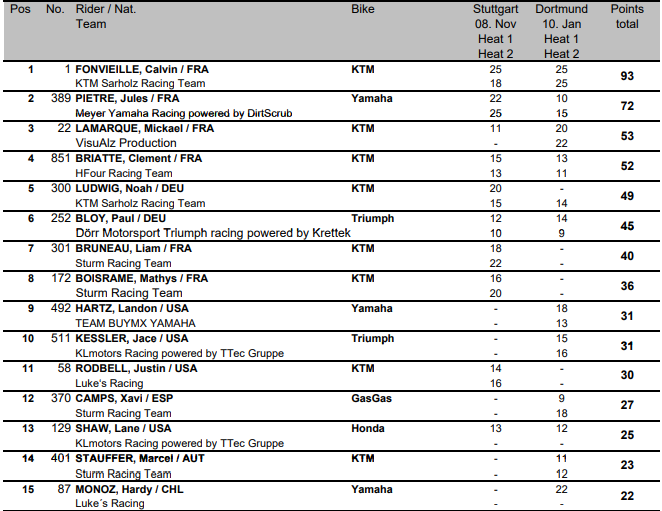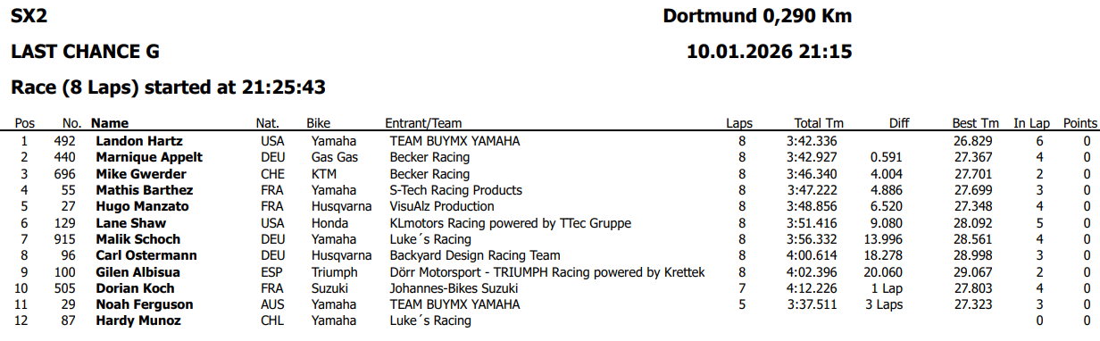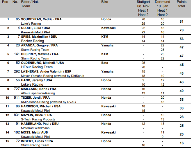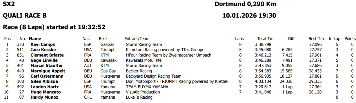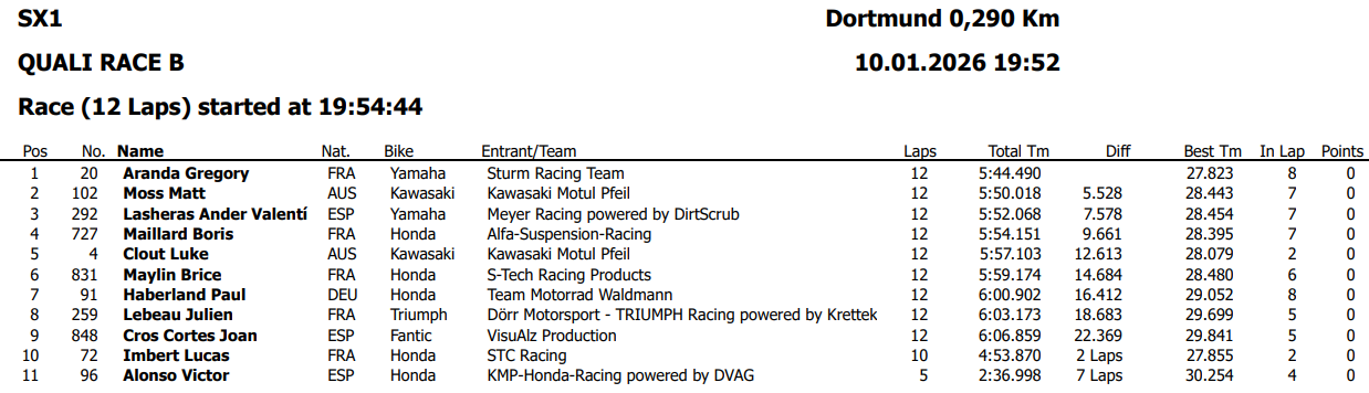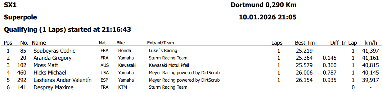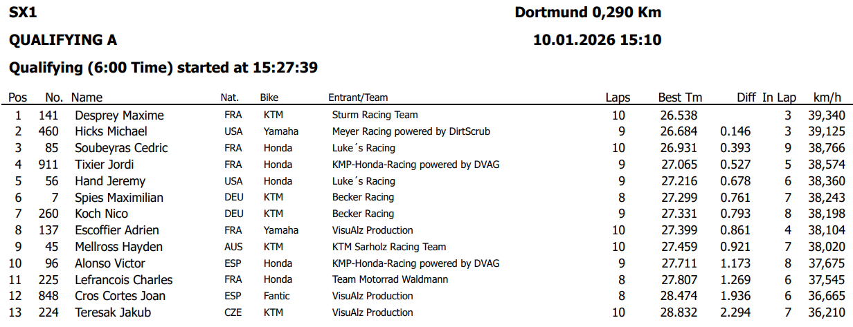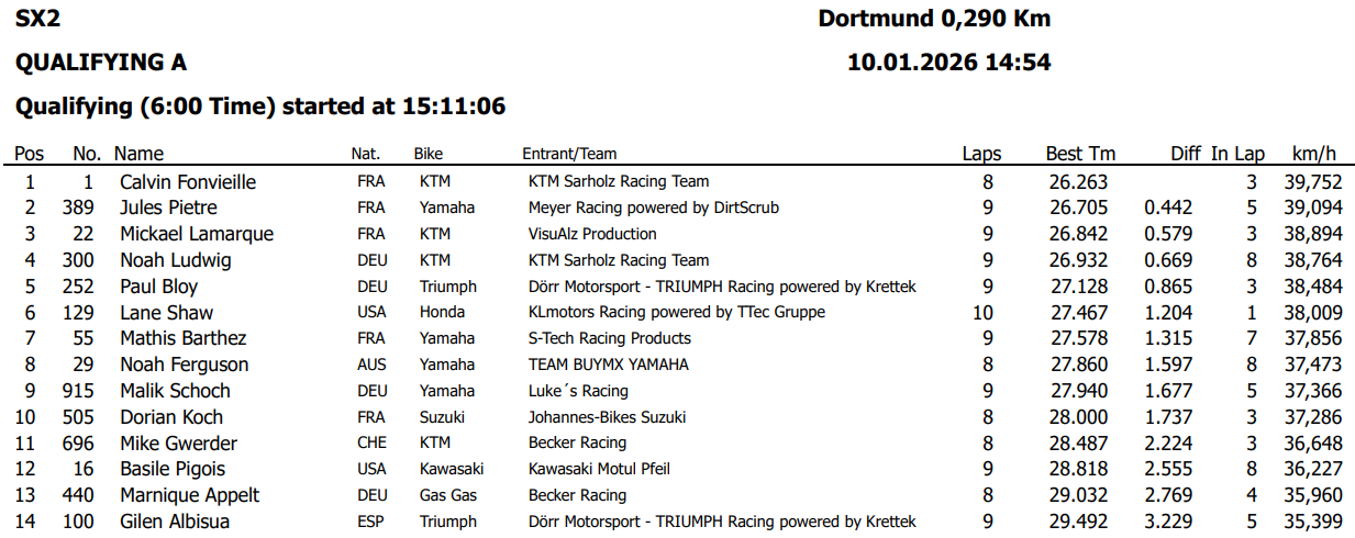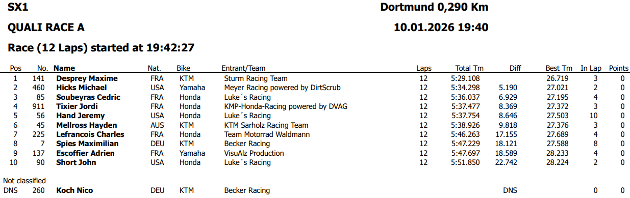 Après les victoires de Calvin Fonvieille et Maxime Desprey ce vendredi en guise d’ouverture [article], le Supercross de Dortmund se poursuit ce samedi pour une seconde soirée qui couronnera les champions ADAC 2025. Fonvieille et Clout sont actuellement détenteurs de la plaque rouge dans leur catégorie respective.