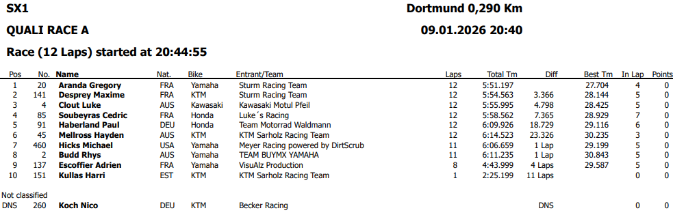 Place à la soirée d’ouverture du 41ème Supercross de Dortmund ce vendredi. Les champions ADAC seront couronnés au terme du week-end, tout comme les nouveaux Prince et King de Dortmund.