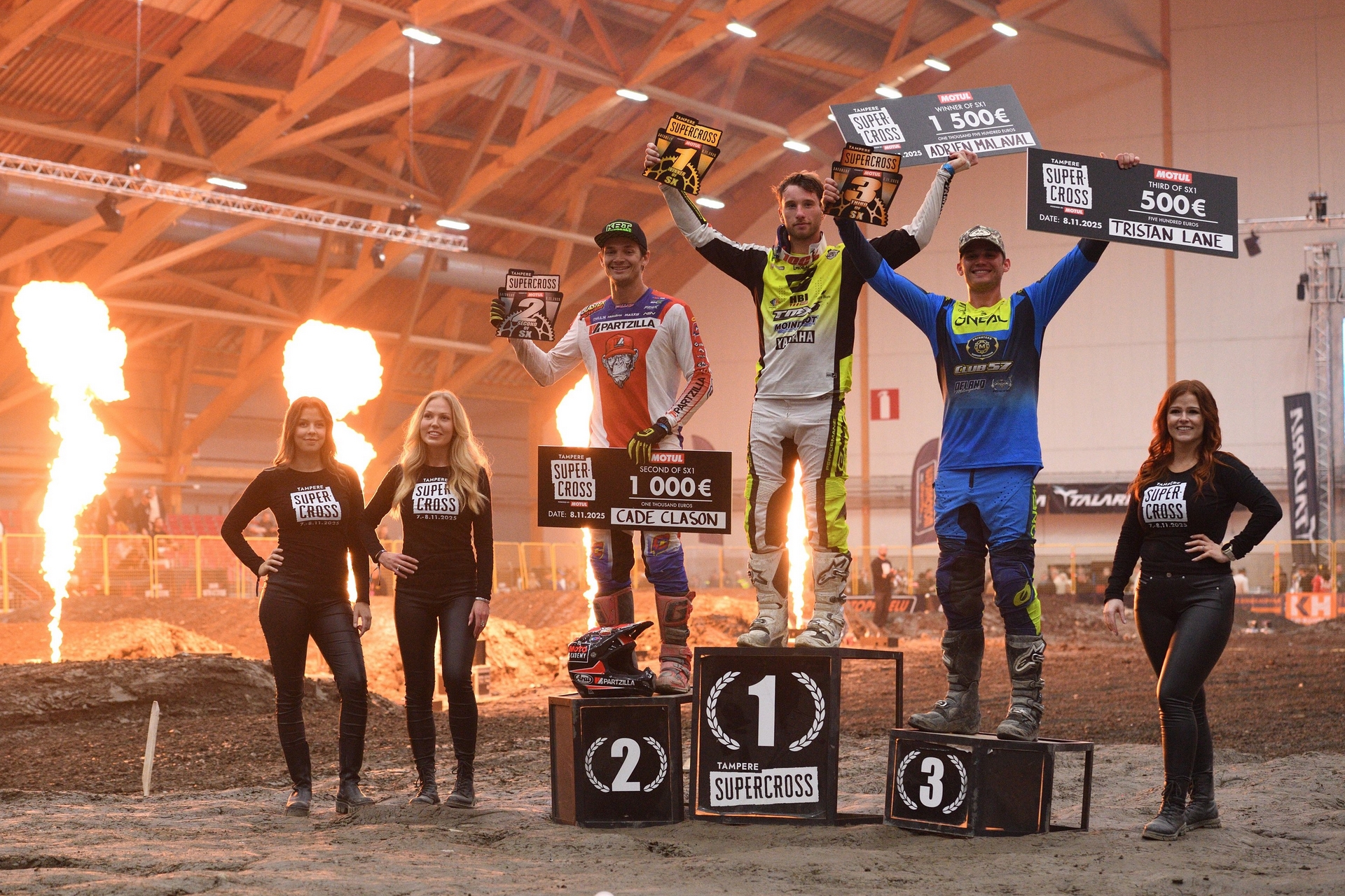 Au terme des deux soirées, Adrien Malaval (3-1) remporte le Supercross de Tampere devant Cade Clason (5-2) et Tristan Lane (4-3). Talviku (2-8) et Kullas (1-14) viendront compléter le top 5. La pige de David Herbreteau (9-7) en Supercross le verra terminer 8ème à Tampere, derrière Mike Alessi (8-4) et son coéquipier Stark Future Kelana Humphrey (7-6).