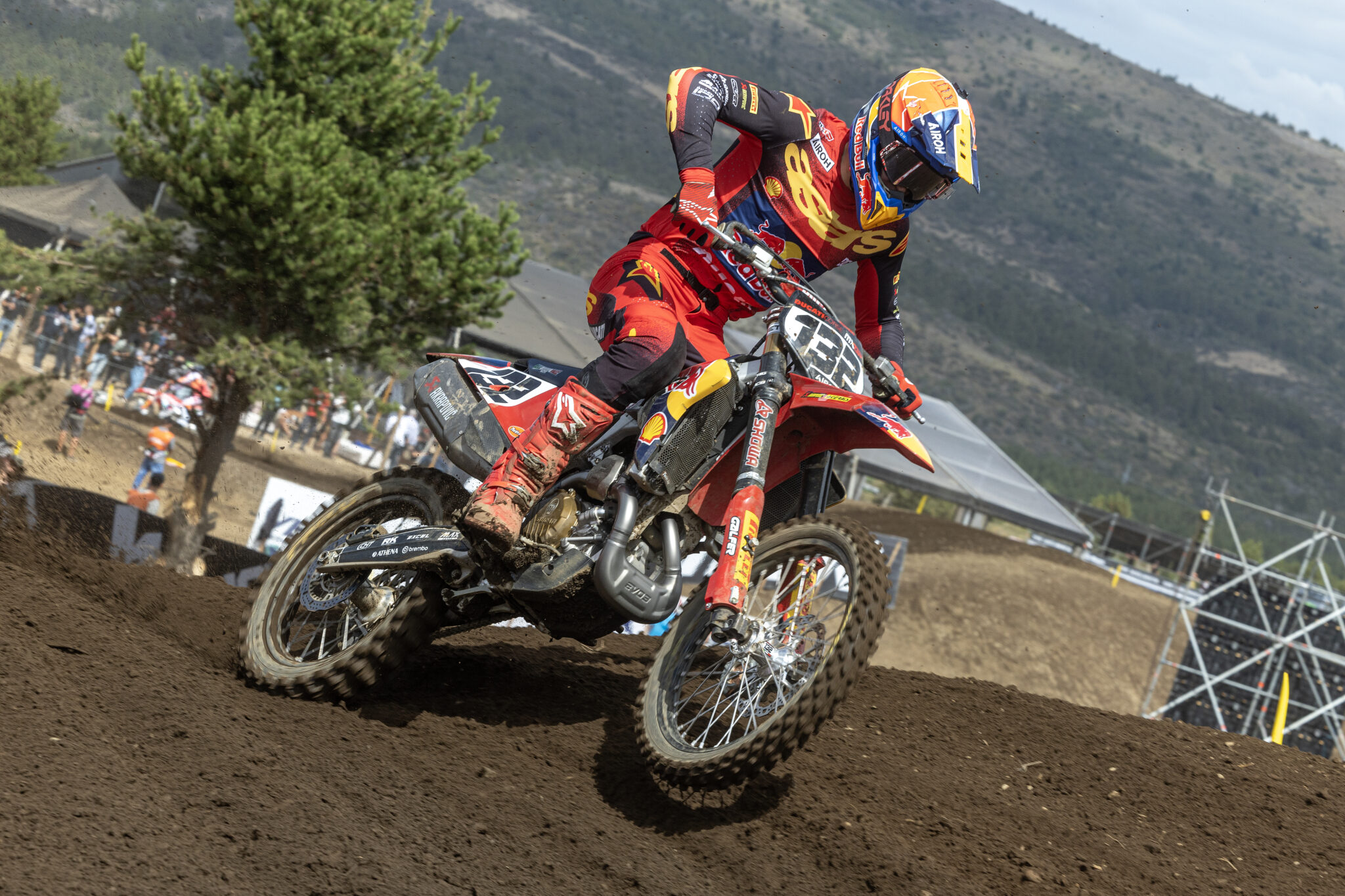 Avec un Italien, un Suisse et un Néerlandais au sein de son programme MXGP en 2026, Ducati a misé sur un casting international aux profils complémentaires. Repris par Louis Vosters, le programme du constructeur de Bologne n’a pas connu un début de saison 2026 facile avec la blessure d’Andrea Bonacorsi, et les difficultés de Jeremy Seewer. La bonne nouvelle, c’est que le pilote Italien de 22 ans fera son retour aux affaires dans le sable de Riola Sardo ce week-end. Présent lors de l’ouverture du Dutch Masters de Heerde ce lundi – en guise de préparation – Andrea s’est prêté au jeu de l’interview. Micro.