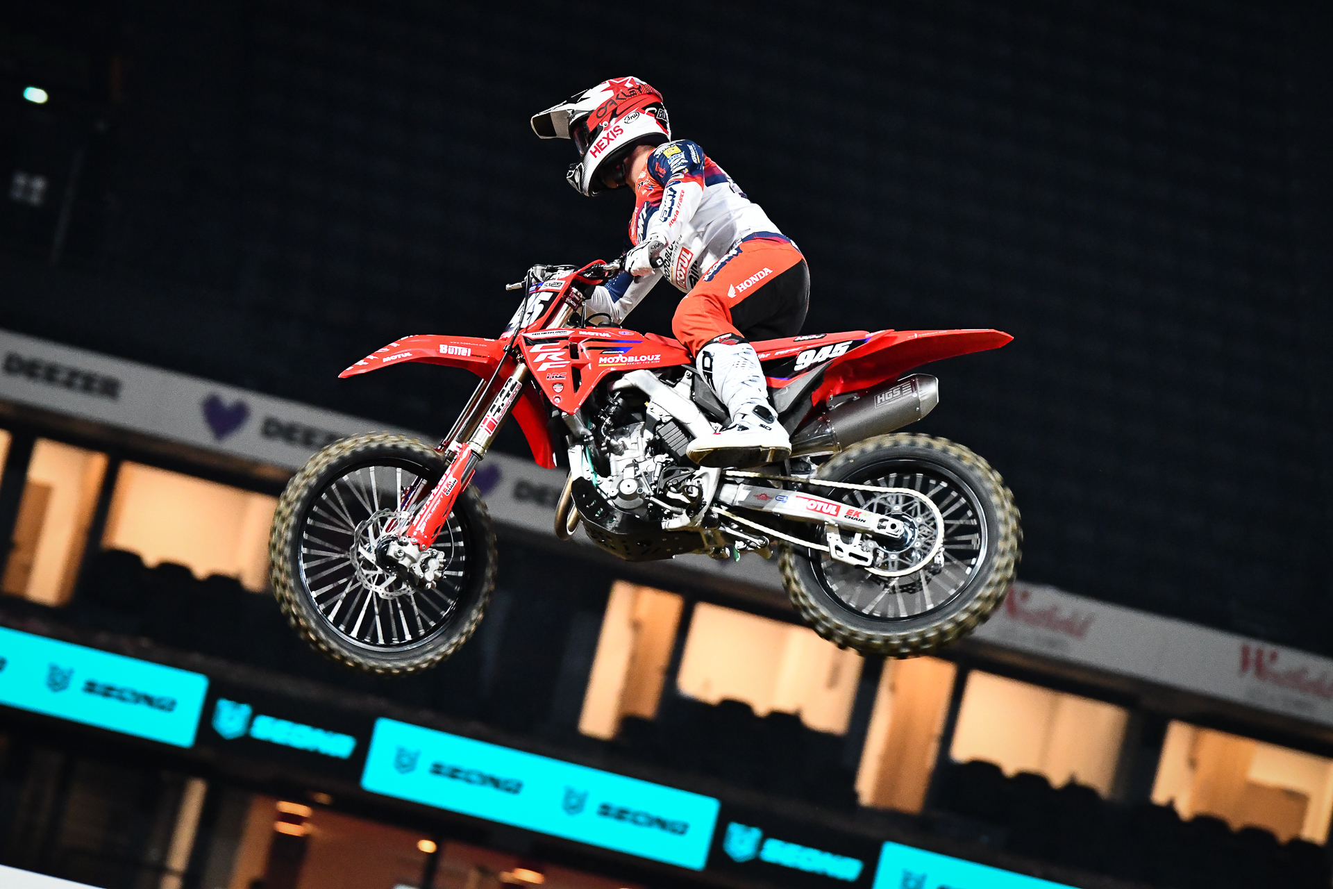 C’est vrai que maintenant, je suis un pilote 450 sur le SX Tour. En fait, c’est tout simple : on a fait le choix de rouler en 250 parce qu’il y avait l’opportunité de faire un podium et même de jouer la victoire. En 450, on ne va pas se le cacher, c’était compliqué à envisager. Jouer les premières places avec les frères Lawrence, Webb, Malcolm et compagnie, ce n’est pas donné à tout le monde. Le but, c’était de mettre la Honda sur la plus haute marche en 250. C’est chose faite, voilà pourquoi j’ai décidé de rouler à Paris en 250.
