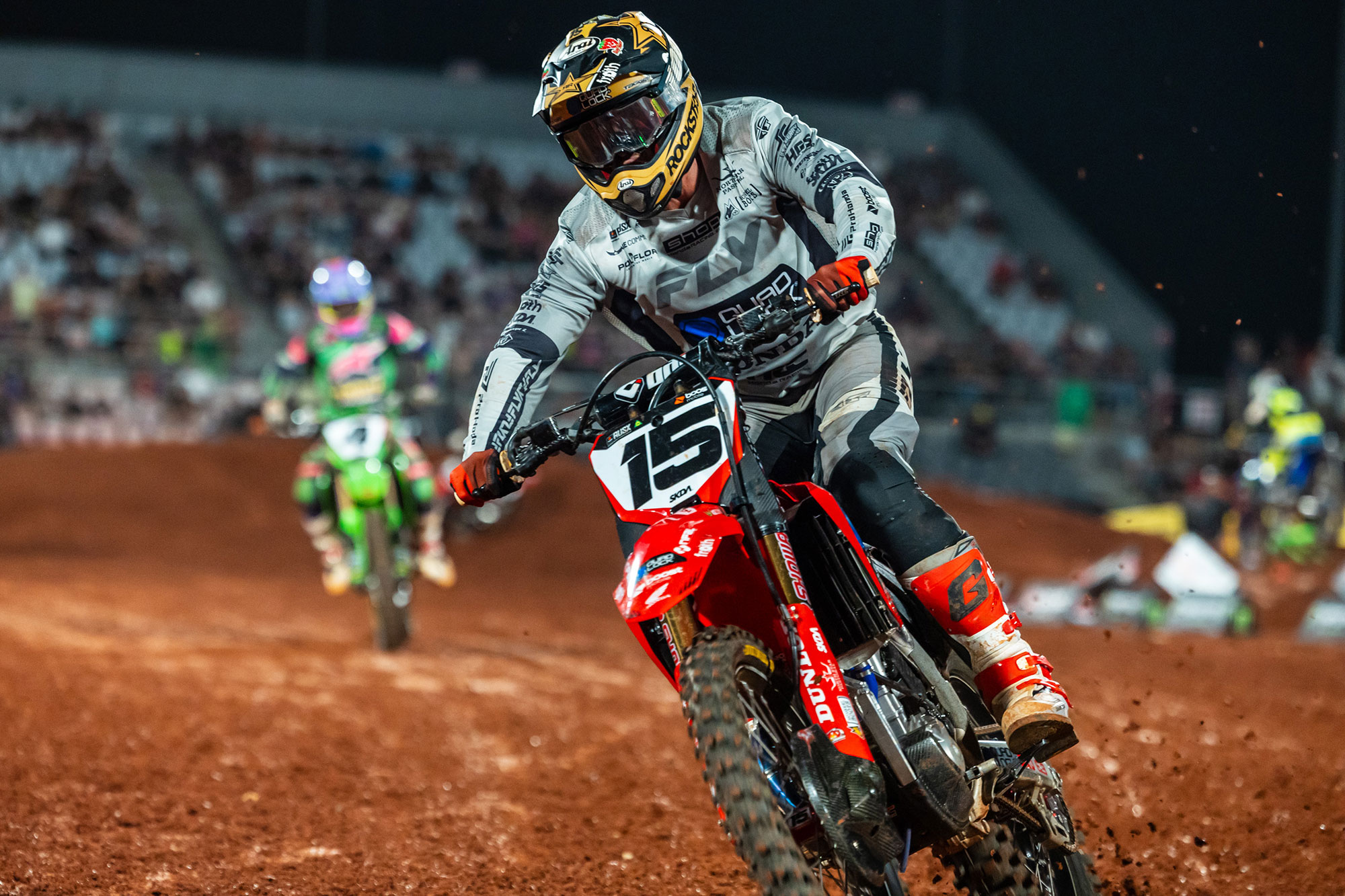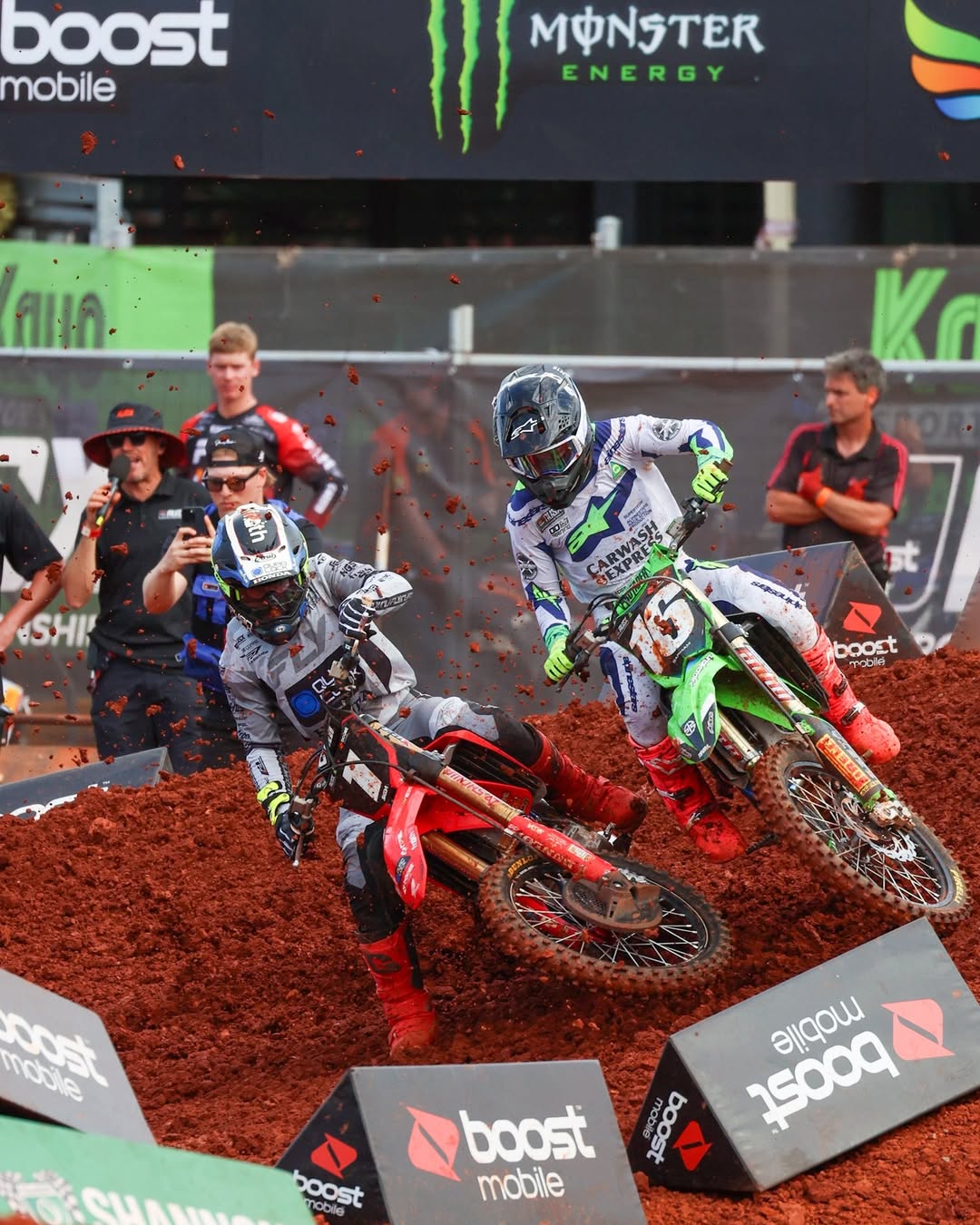 S’il avait connu des départs moyens le samedi, Dean Wilson a mieux tiré son épingle du jeu en sortie de grille lors des deux finales SX1 du dimanche, en prenant rapidement les commandes des courses pour ne plus être rejoint par la suite. Cédric Soubeyras le suivra dans les deux manches, non sans être parti en tête devant l’Écossais dans le second débat, avant d’être repris puis distancé par ce dernier. Le pilote français – troisième le samedi – termine second le dimanche pour ses deux premières sorties au guidon de la 450 CRF du team Boost Mobile Honda. Notons que Cédric a remporté ses deux heats ce week-end, malgré une crevaison le dimanche.