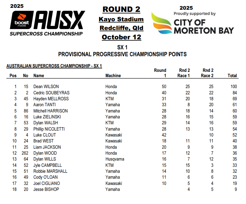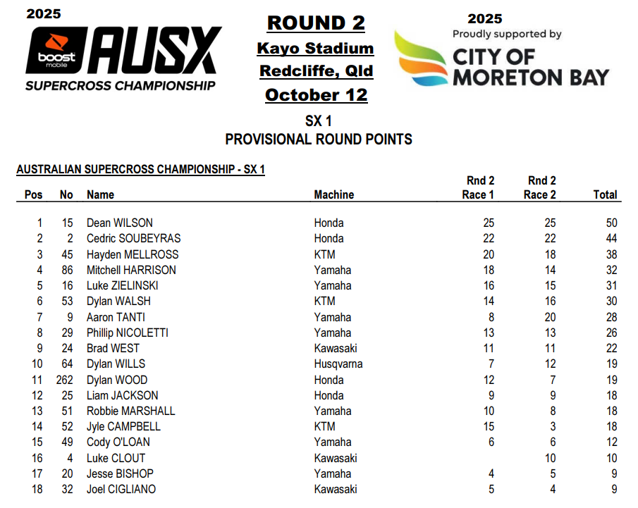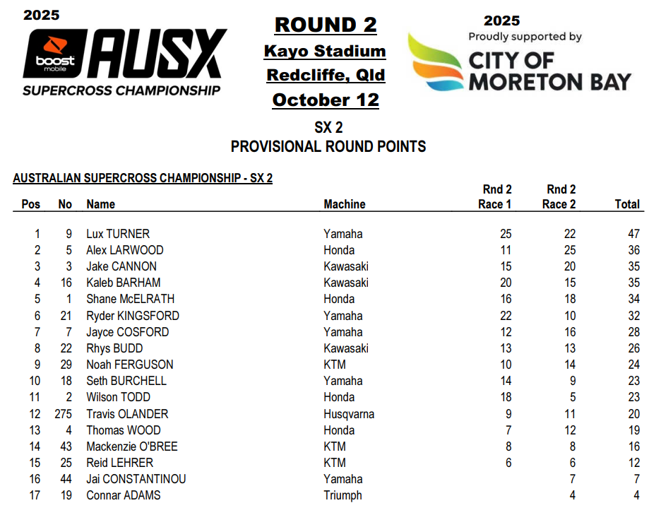 SX2 – Résultats Round 2 – Redcliffe