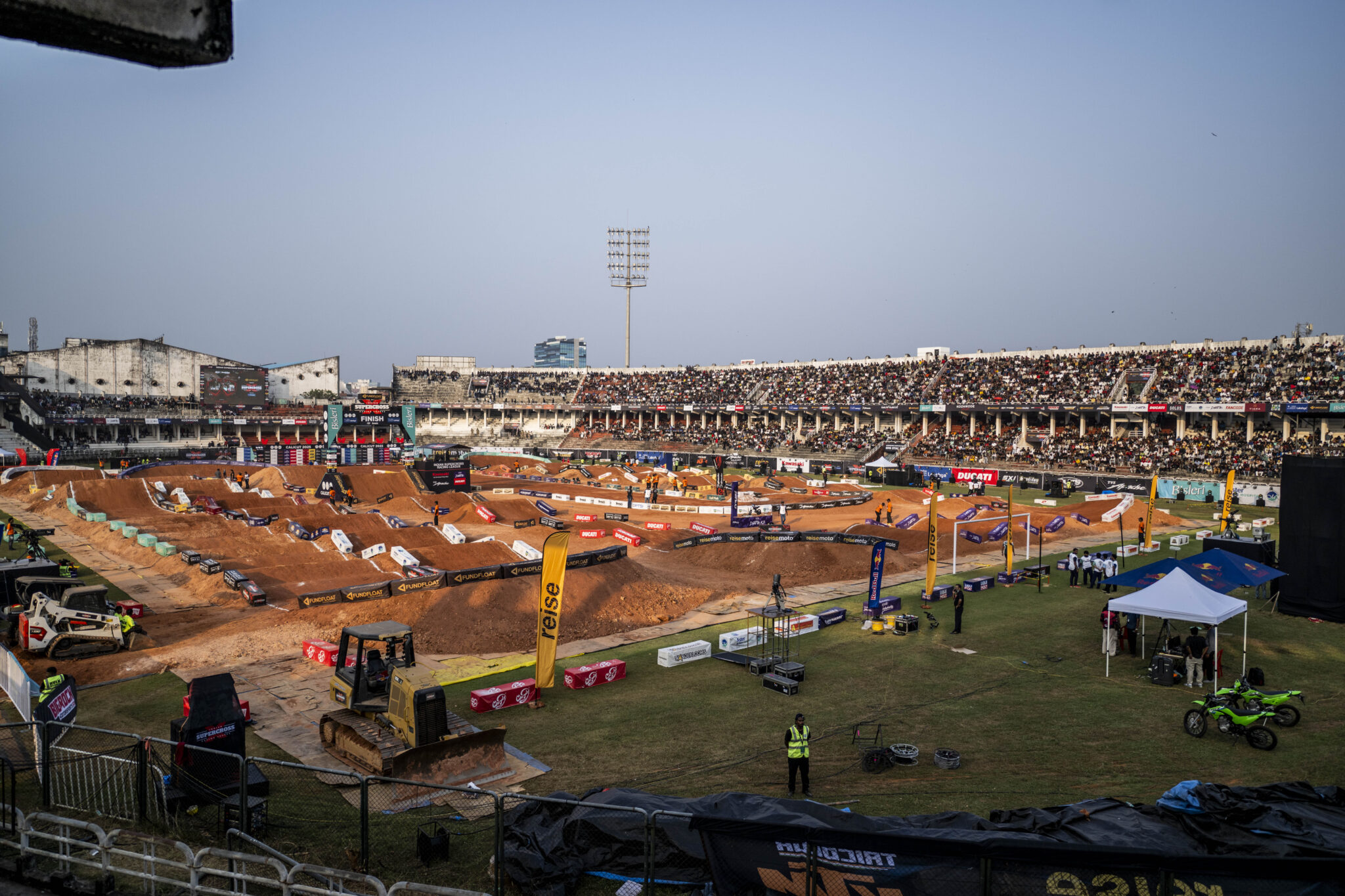 Engagé par le team IndeWheelers Motorsports pour disputer la catégorie SX2 internationale, à l’occasion de sa première participation au championnat de Supercross indien, Calvin Fonvieille n’a pas manqué l’opportunité. Deuxième derrière Hunter Schlosser lors du premier round boueux de Pune, puis vainqueur à Hyderabad, le pilote français abordait la finale de Calicut avec la plaque rouge. Auteur du doublé, en dominant la première manche et en donnant la réplique à Hugo Manzato dans la seconde, Calvin Fonvieille décroche le titre de champion SX2 devant un stade comble, sur une piste à la hauteur de l’événement.