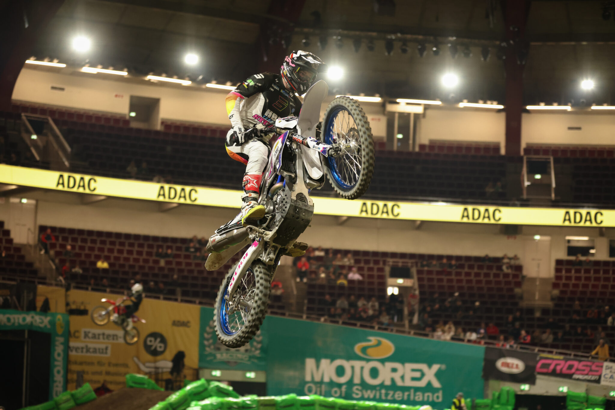 Vainqueur du Supercross de Stuttgart en novembre dernier, Cédric Soubeyras arrivait à Dortmund avec la plaque rouge en SX1, et le soutien du team Allemand Luke’s Racing. Après une première soirée de vendredi conclue à la cinquième place, il se voyait détrôné des rennes du championnat mais abordait l’ultime finale de la saison avec seulement un point de retard sur le nouveau leader Luke Clout.