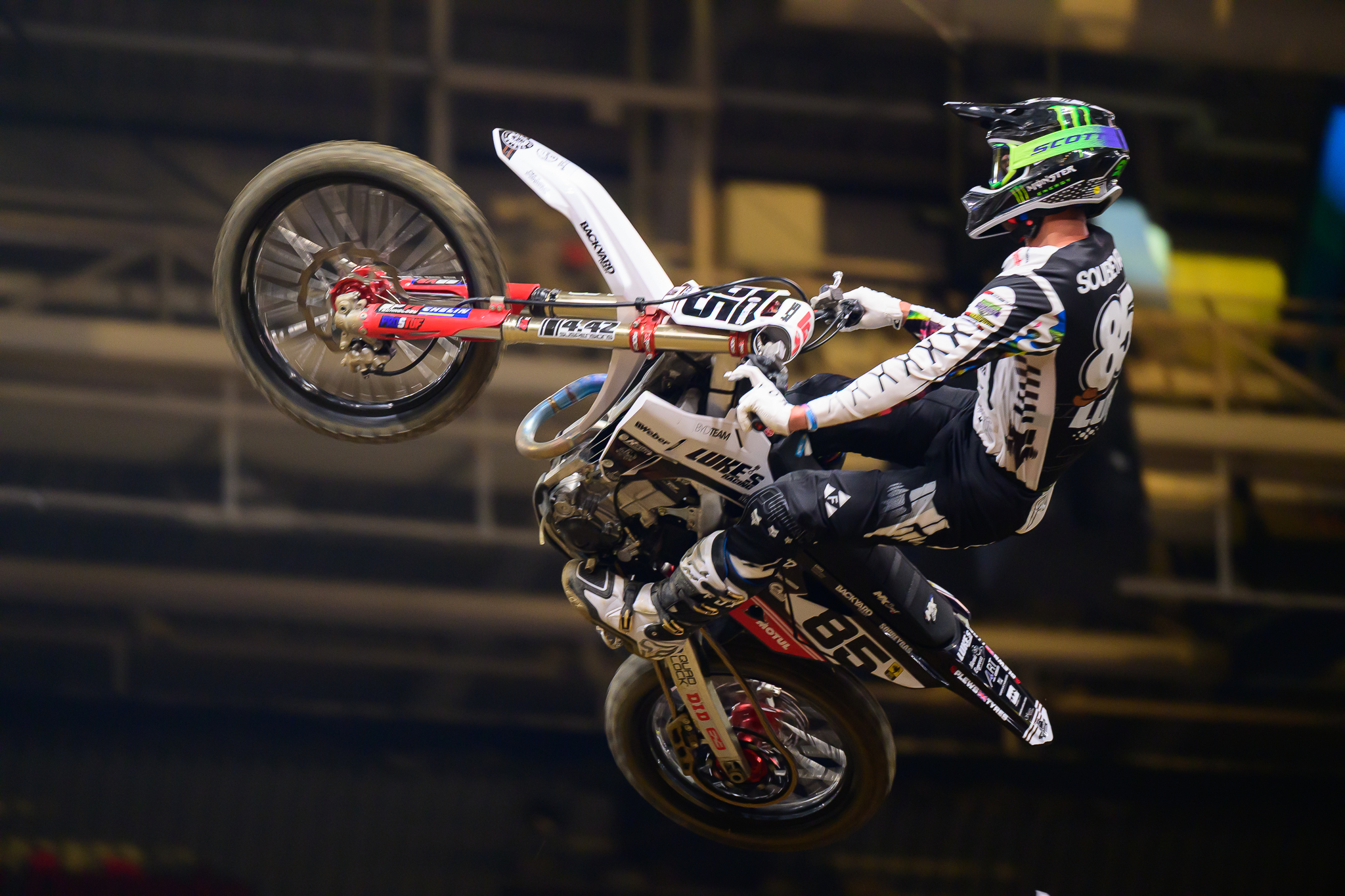 Vainqueur de sa manche qualificative, Cédric a parfaitement géré son départ lors de la finale SX1 du samedi et s’est rapidement calqué sur le rythme d’Ander Valentin – auteur du holeshot. Derrière eux, Adrien Escoffier, Boris Maillard et Luke Clout suivaient, tandis que le vainqueur de la veille pointait hors du top 5 et peinait à remonter dans les premiers tours.