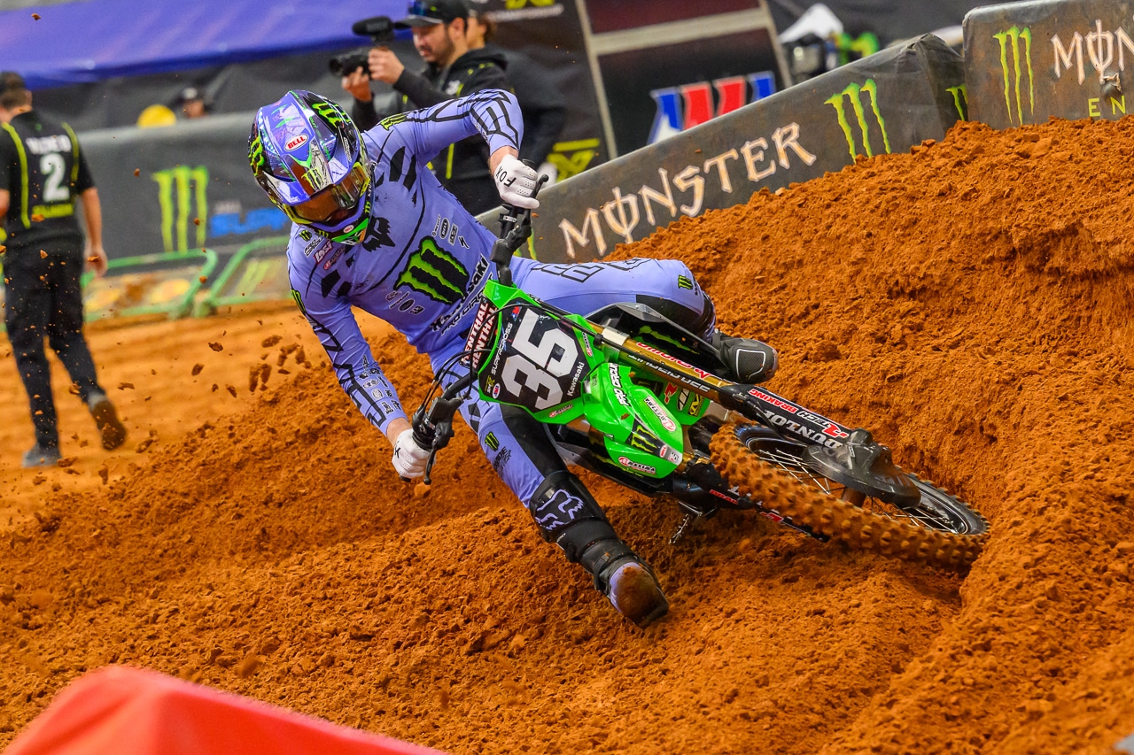 Une semaine après avoir signé son meilleur résultat — une sixième place — à Arlington, Drew Adams arrivait avec de sérieuses ambitions à Daytona pour son 5ᵉ Supercross de carrière. L’officiel Pro Circuit Kawasaki répondait présent d’entrée de jeu en signant sa toute première pole — devant Brown et Bennick — avant de remporter sa première manche qualificative — devant Shimoda et Hammaker. Mais la soirée de l’officiel Kawasaki a pris un mauvais tournant durant la finale.