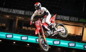 En tête de sa manche qualificative à Glendale ce samedi, l’officiel Star Racing Yamaha s’est rapidement satellisé sur un enchaînement. Trop court sur un triple, Nate Thrasher s’est retrouvé éjecté par l’avant sur l’appel du saut suivant. Le garçon se retrouvera alors coincé entre deux lignes, obligeant l’organisation à arrêter la course pour s’occuper du pilote Yamaha et l’évacuer. Nate Thrasher a terminé la soirée en observation dans un hôpital local pour y passer quelques examens. Les nouvelles sont rassurantes, Nate Thrasher ne souffre « que » de contusions osseuses et d’une commotion cérébrale. Il devra observer un peu de repos ces prochaines semaines mais le temps ne manquera pas puisque la côte Ouest sera en pause lors des six prochaines semaines.