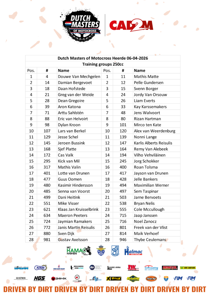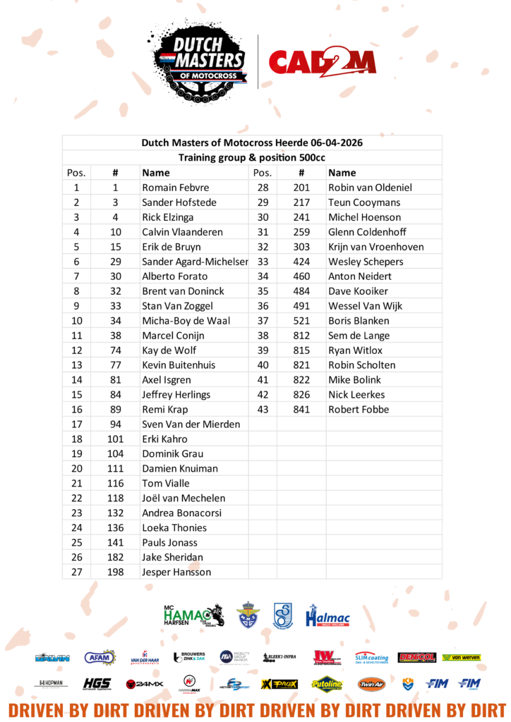 Profitant de la pause entre la Suisse et la Sardaigne, quelques pilotes de Grand Prix vont utiliser l’ouverture de la série néerlandaise pour se préparer en vue de l’épreuve de Riola Sardo – 4ᵉ rendez-vous de la saison MXGP 2026. Ainsi, les rangs se sont densifiés ces dernières semaines, puisque Heerde offre un terrain de jeu idéal pour se tester dans le sable hollandais avant de s’attaquer à celui de Sardaigne. C’est pour cette raison que Tom Vialle s’est retiré de l’Élite de Saint-Jean-d’Angély. À noter que le dimanche, Jeffrey Herlings sera en Angleterre pour disputer le second round du championnat British ACU, avant de rouler à Heerde le lundi.