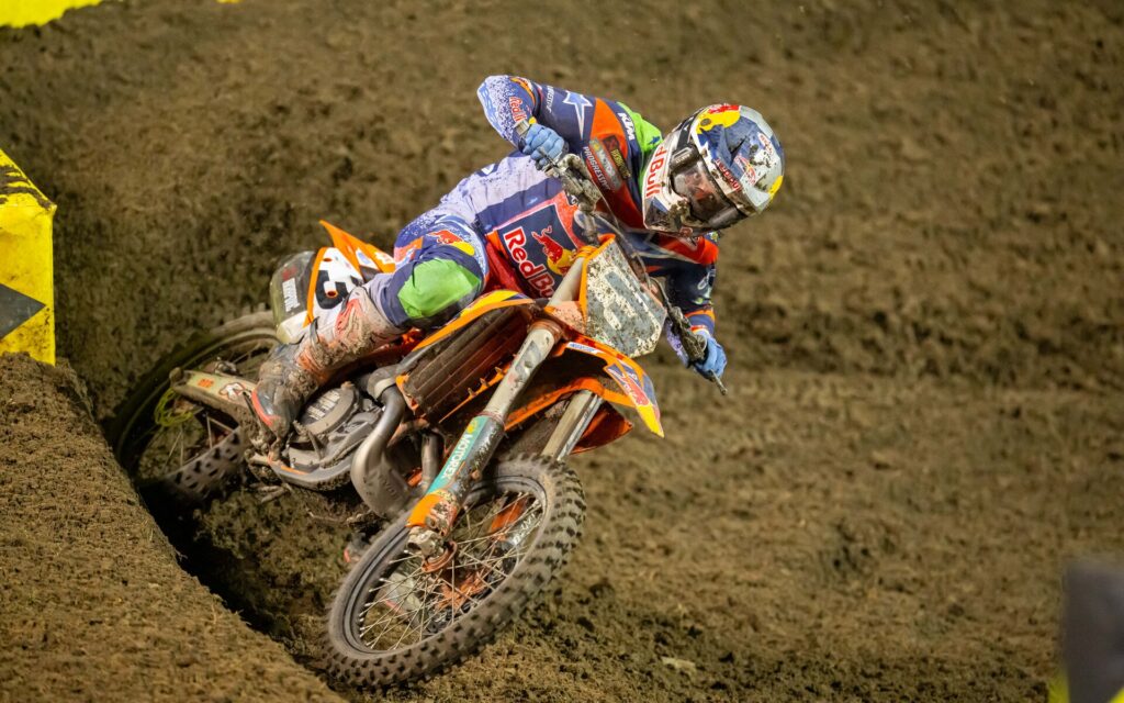 Douze Daytona, onze podiums dont huit victoires. Eli Tomac défie encore la chronique à Daytona ce samedi en s’adjugeant un nouveau succès sur le mythique speedway. Après y avoir gagné sur Kawasaki et Yamaha, Eli fait triompher KTM — qui ne comptait jusqu’alors qu’un seul succès sur l’épreuve, celui de Ryan Dungey en 2015, depuis la création de la course en 1974 — et reprend 3 points à Hunter Lawrence dans la course au titre. Une victoire de plus, une dent en moins. Micro.