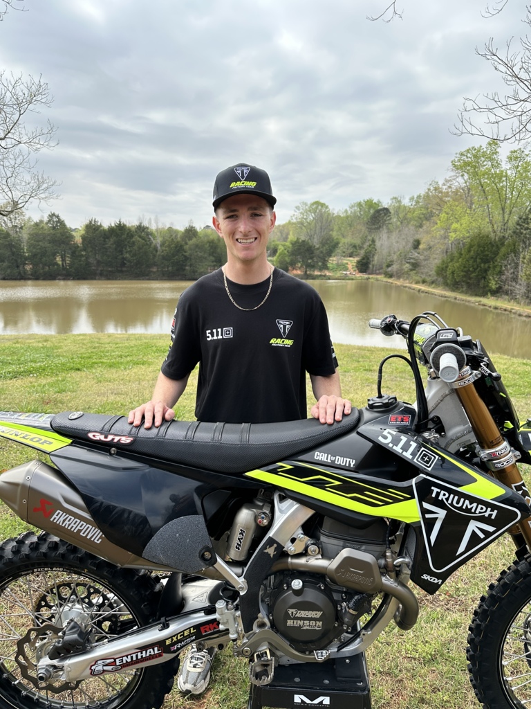 Du haut de ses 23 ans, Gage Linville revient en piste en tant qu’officiel Triumph, une signature surprise compte tenu qu’il n’a jamais réellement fait des étincelles au plus haut niveau et ne compte qu’un seul top 10 d’épreuve depuis son arrivée ches les professionnels : son podium dans la boue de Foxborough 2025, derrière Chance Hymas et Cullin Park.