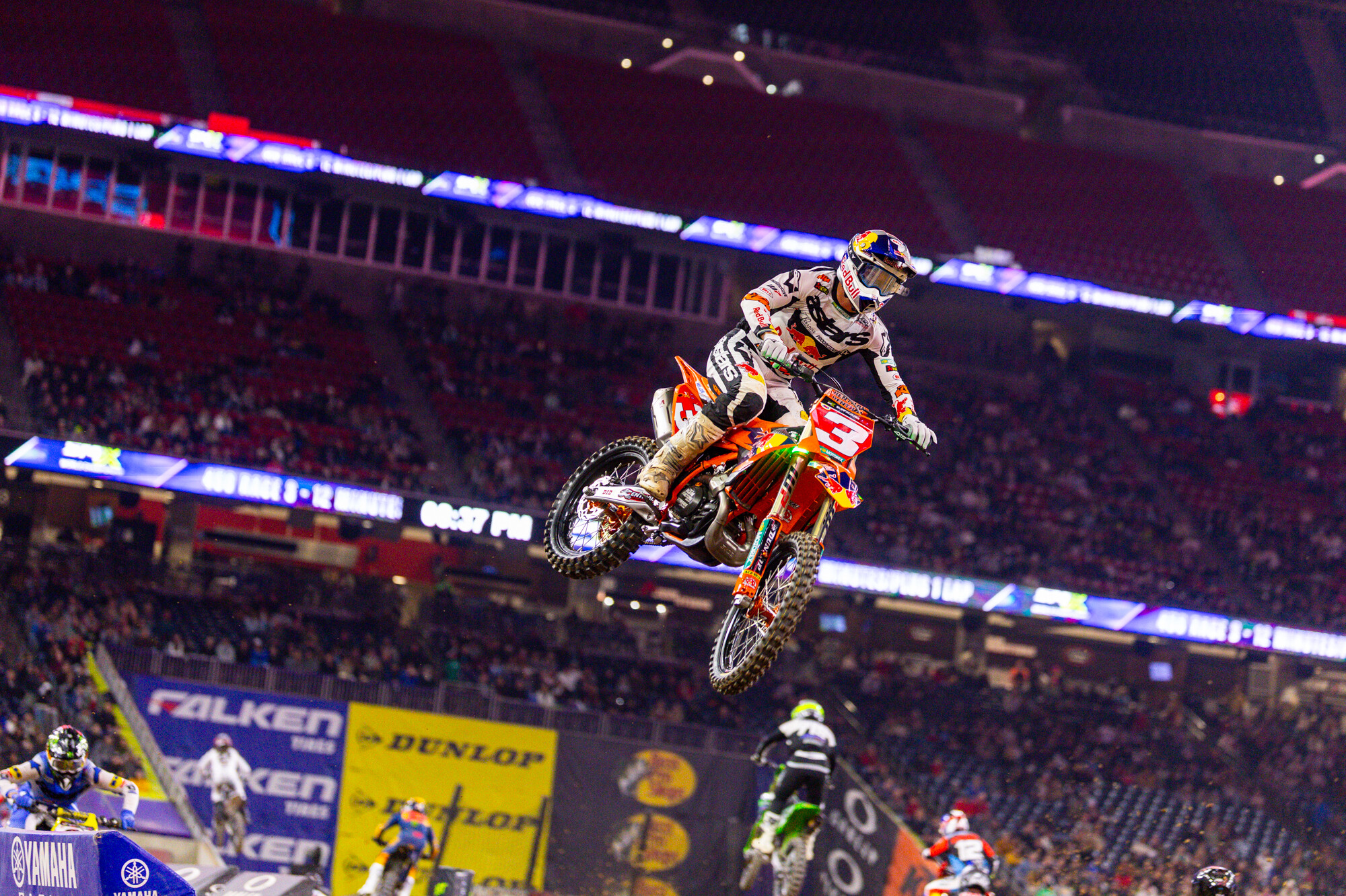 Hunter Lawrence ne sera pas en mesure de répondre, mais ne subira jamais la pression directe de Cooper Webb, qui perdra progressivement le contact avec le pilote Honda HRC au fil de la finale. Justin Cooper — pour une fois auteur d’un bon départ — s’accrochera à la quatrième place devant Jorge Prado (5e), auteur du meilleur chrono en course et vainqueur de sa manche qualificative.