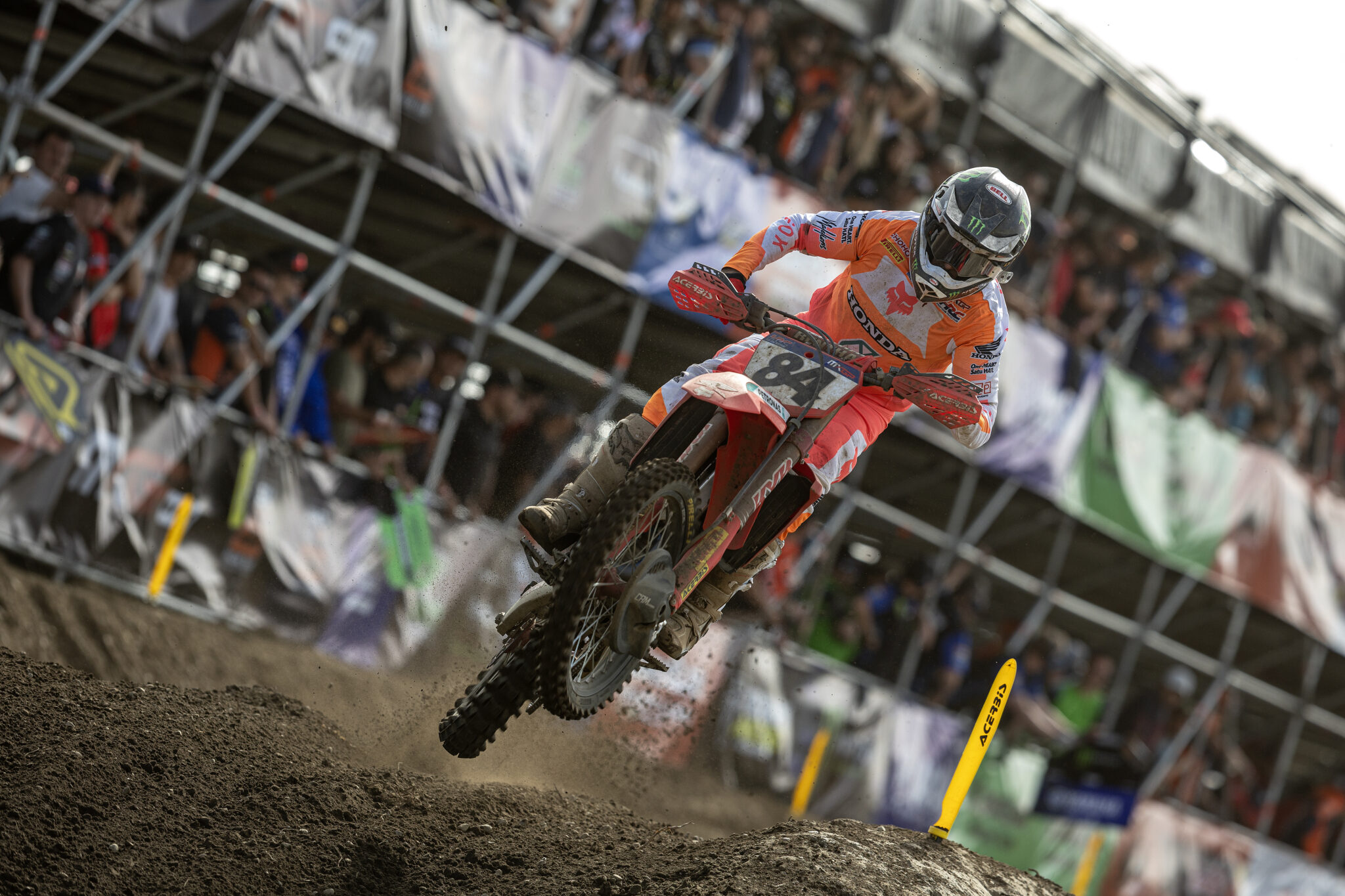 Lucas Coenen fera tomber les chronos en fin de manche et se rapprochera de Tim Gajser. Le leader du championnat fera la jonction sur le pilote slovène dans le 10ᵉ tour, puis partira à la poursuite de Jeffrey Herlings, qui comptait moins de deux secondes d’avance. Mais le Néerlandais en remettra une couche dans les derniers tours et parviendra à l’emporter devant Lucas Coenen et Tim Gajser.