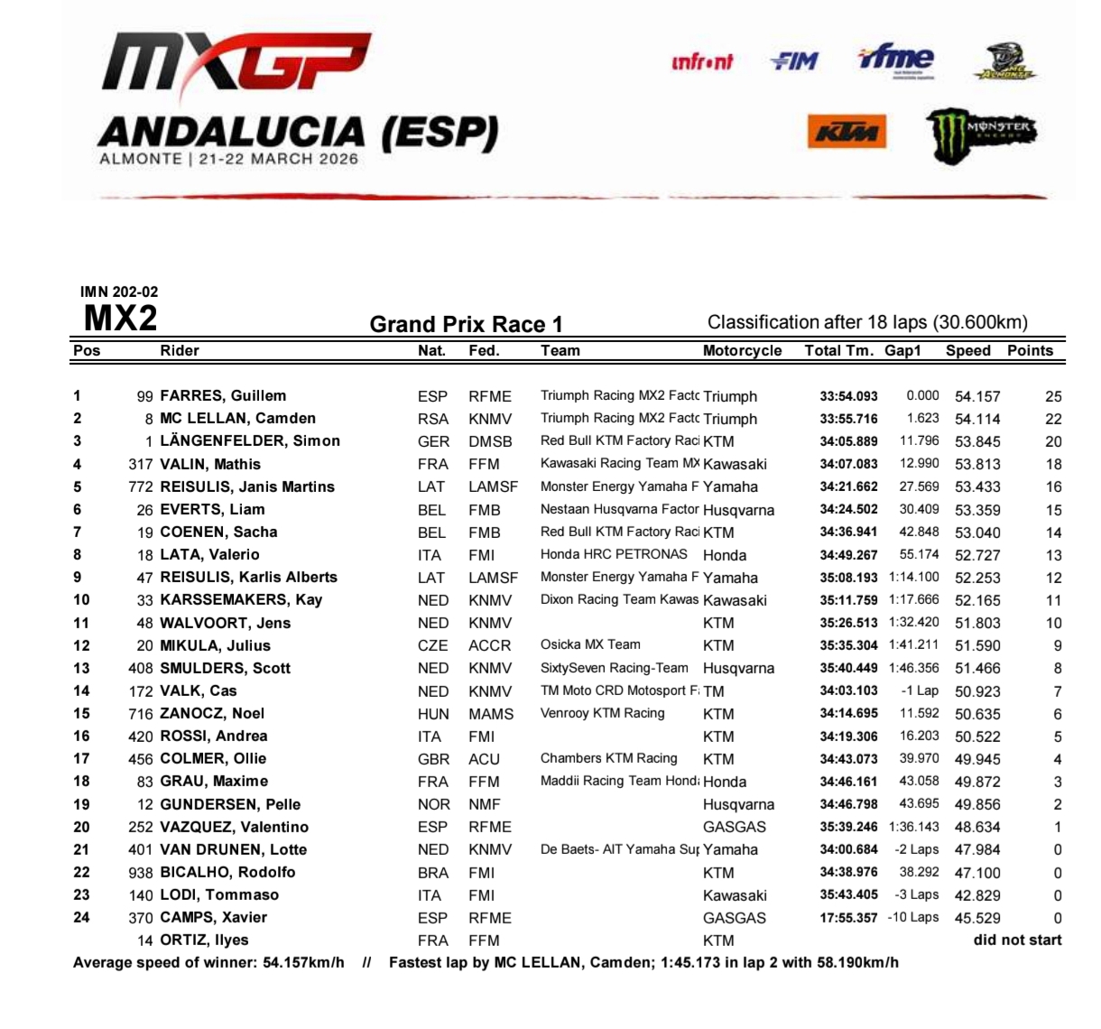 Classement épreuve MX2