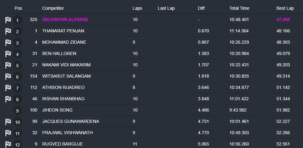Classement épreuve et situation championnat 250cc Asia / India Mix