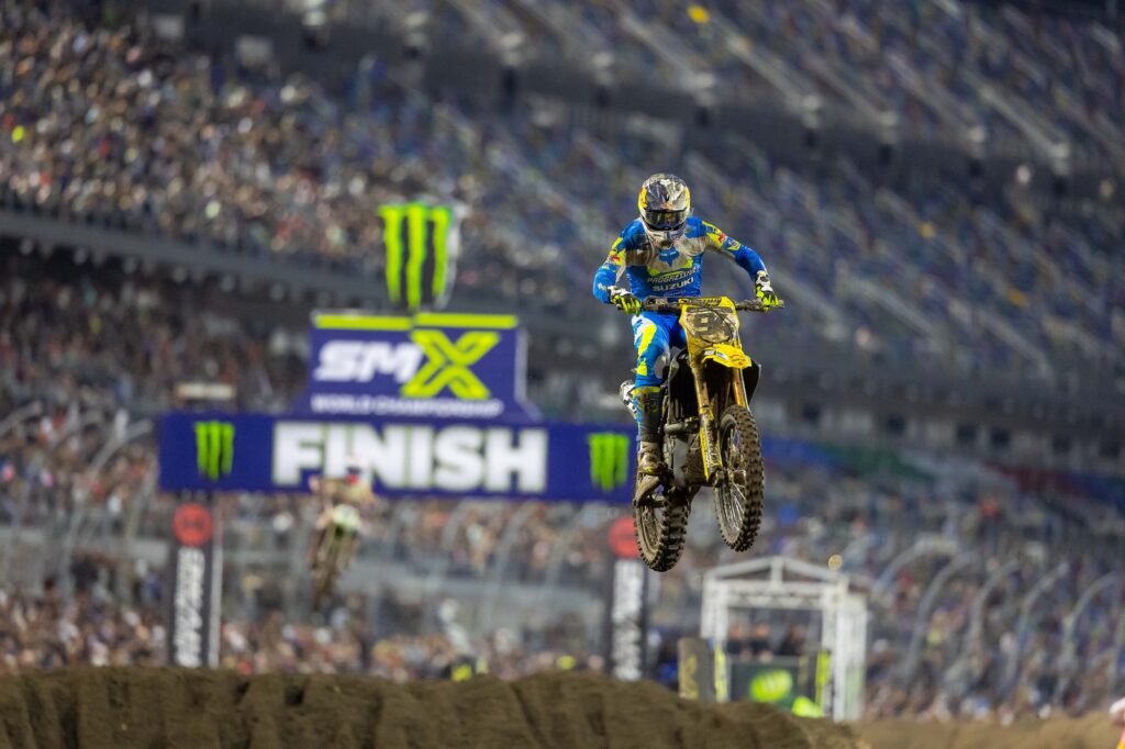 Vainqueur à Daytona l’an dernier, Ken Roczen n’a pas pu réitérer la performance cette saison malgré un départ en tête lors de la finale 450. Repris par Eli Tomac puis Hunter Lawrence, le pilote HEP Suzuki concède quelques points dans la course au titre, mais signe un nouveau podium après ses 10e et 4e places d’Arlington et Houston. Le pilote allemand aborde la seconde moitié de saison avec 20 points de retard sur la plaque rouge, bien conscient qu’il devra battre ses deux principaux rivaux au championnat pour conserver ses chances de décrocher le Graal. Micro.