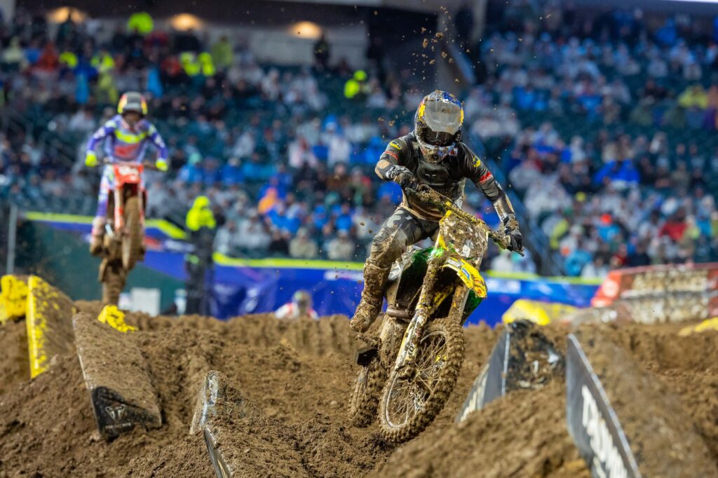 Dans des conditions particulièrement compliquées à Philadelphie, Ken Roczen a une nouvelle fois démontré sa capacité à faire la différence dans les moments difficiles. Vainqueur pour la cinquième fois cette saison, le pilote allemand en profite également pour récupérer la plaque rouge de leader du championnat, qu’il arrache pour seulement quatre points d’avance sur Hunter Lawrence à deux rounds du tombé de rideau.