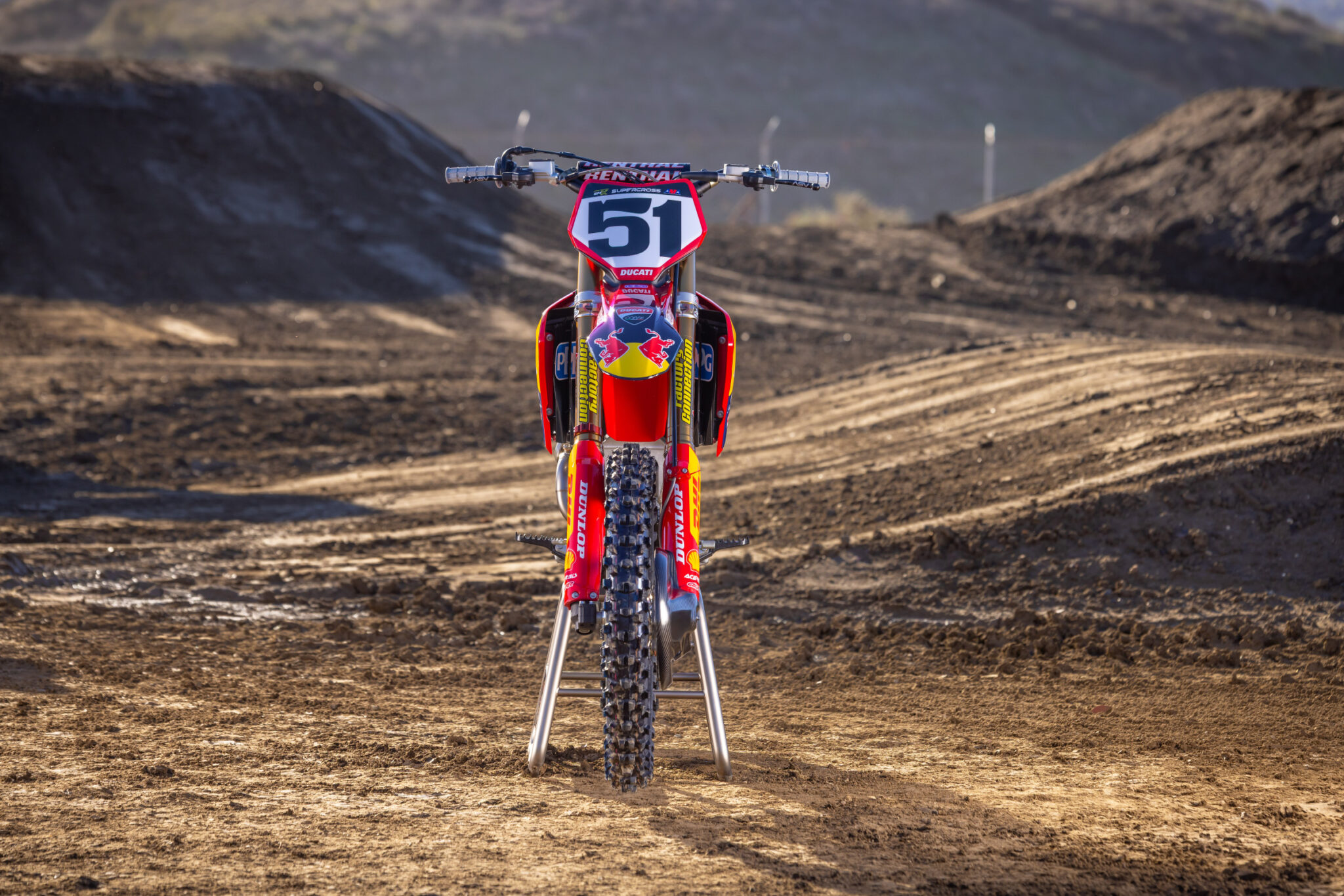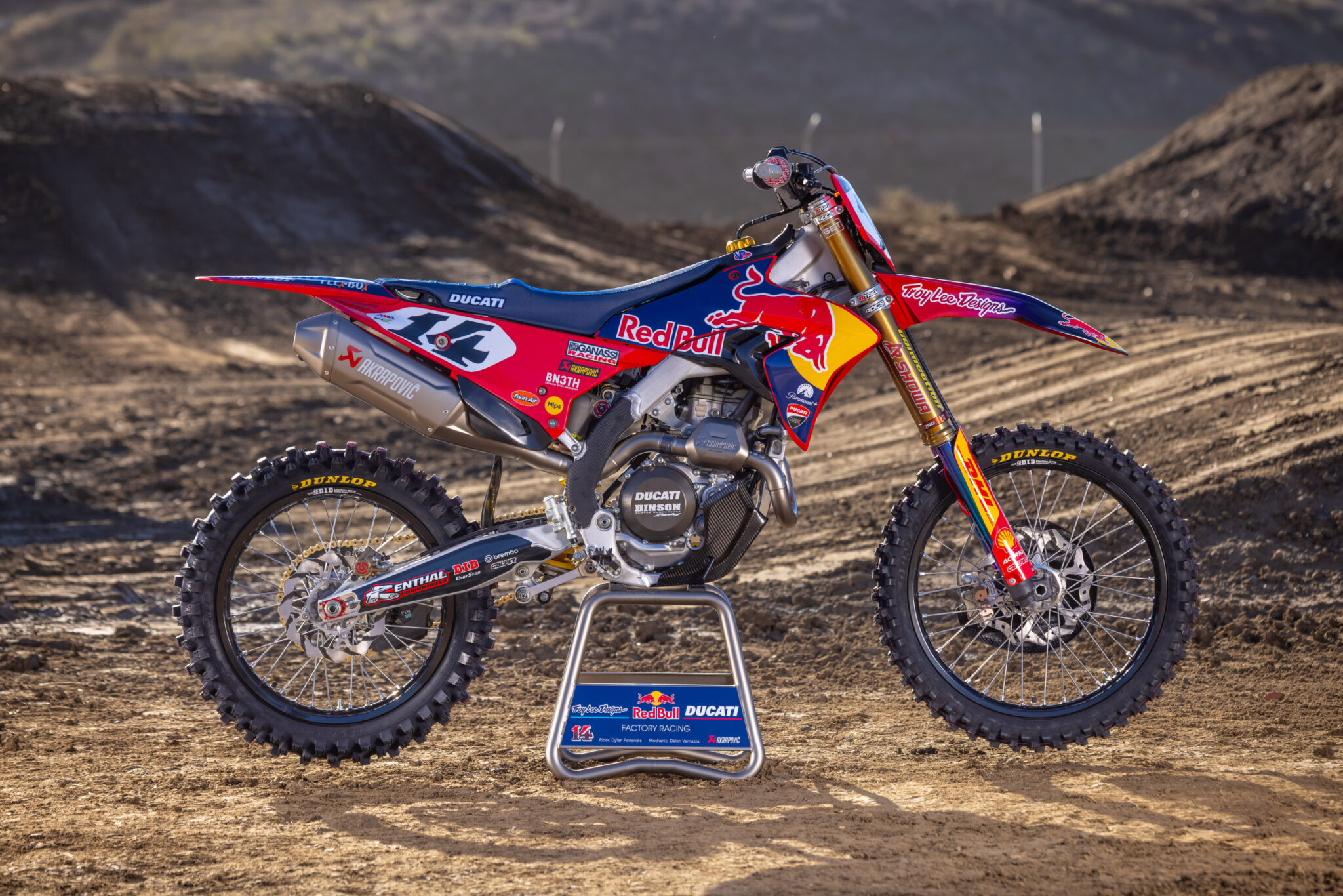 Avec l’arrivée de Ducati sur les championnats AMA en 2026, pas moins de 11 constructeurs seront représentés en catégorie reine lors de la prochaine saison de Supercross US. Dix-neuf pilotes représenteront les dix constructeurs engagés avec un programme officiel dit factory, GasGas ayant stoppé le sien au terme de la saison 2025 et rapatrié ses pilotes 250 chez Husqvarna. Justin Barcia est désormais chez Ducati, aux côtés du Français Dylan Ferrandis. Le constructeur de Bologne a partagé son photoshoot officiel à quelques jours de l’ouverture du championnat SX US. À consommer sans modération.
