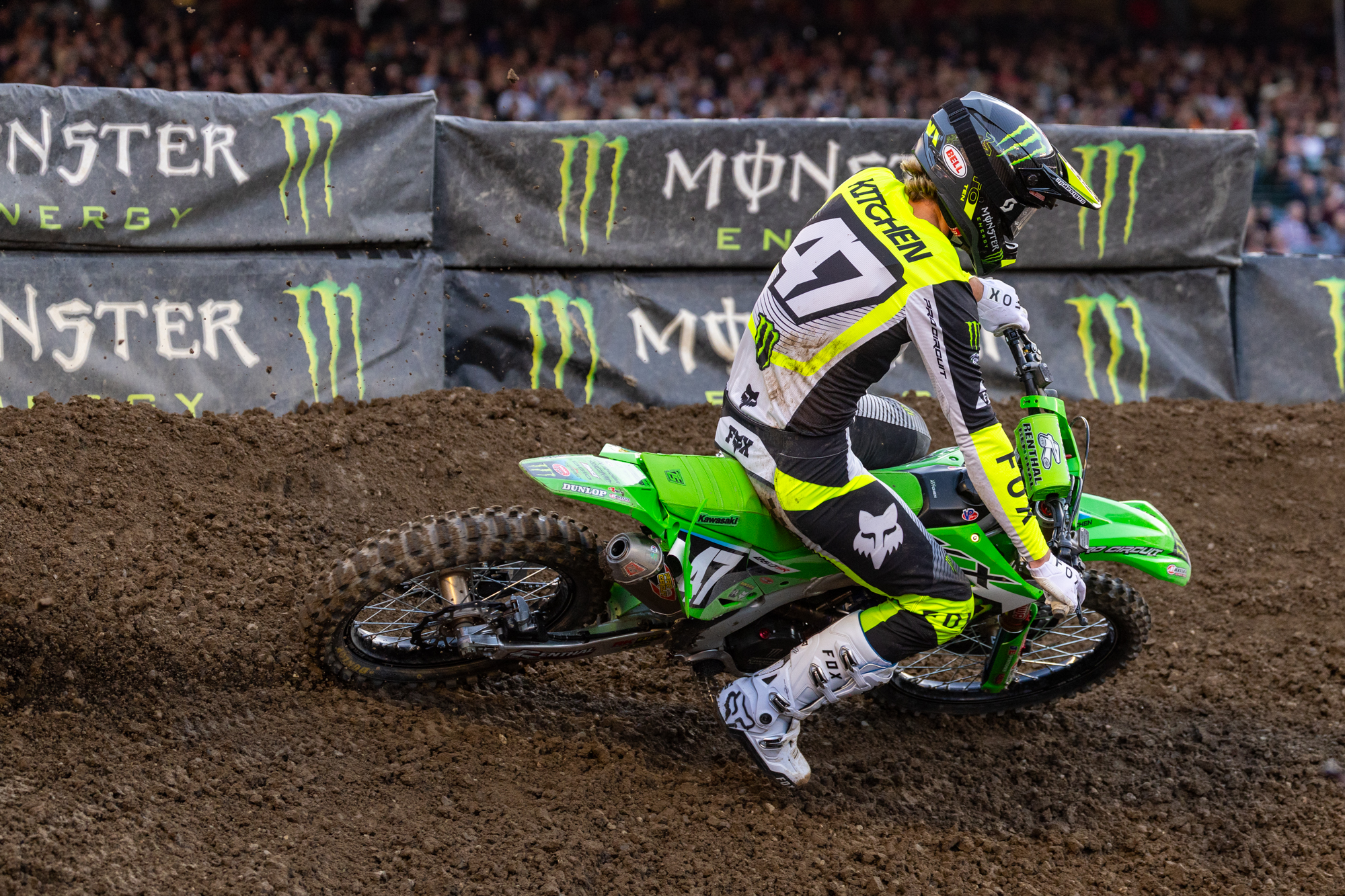 Pour une fois, Levi Kitchen n’a pas mis le nez par terre dans le premier virage. L’officiel Kawasaki Pro Circuit était dans l’un de ses bons jours, mais pas encore assez rapide pour battre Haiden Deegan à la régulière. Le détenteur de la plaque rouge ira d’ailleurs lui faire un block pass appuyé — mais propre — pour prendre la tête lors de la seconde finale.
