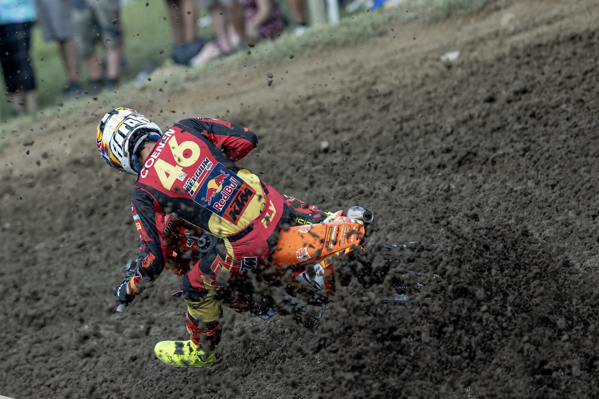 Le vice-champion du monde MXGP a débuté son week-end sous pression, chutant dès le premier virage de sa manche qualificative le samedi. Reparti bon dernier, Lucas a réussi à remonter jusqu’à la sixième place, tandis que son frère Sacha s’imposait en MX2 et que Liam Everts terminait cinquième en Open. Les Belges affichaient leurs ambitions et se confirmaient comme de sérieux prétendants au podium final.