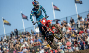 Parti en tête en première manche MX2+MXGP, Lucas Coenen sera repris dans les premiers mètres par Jett Lawrence, qui creusera ensuite l’écart pour aller s’imposer devant le pilote belge. Lucas partira de nouveau devant en seconde manche et s’installera en seconde position derrière Hunter Lawrence. Un temps au contact du pilote australien, il finira par chuter à mi-course et rétrogradera en dixième position.