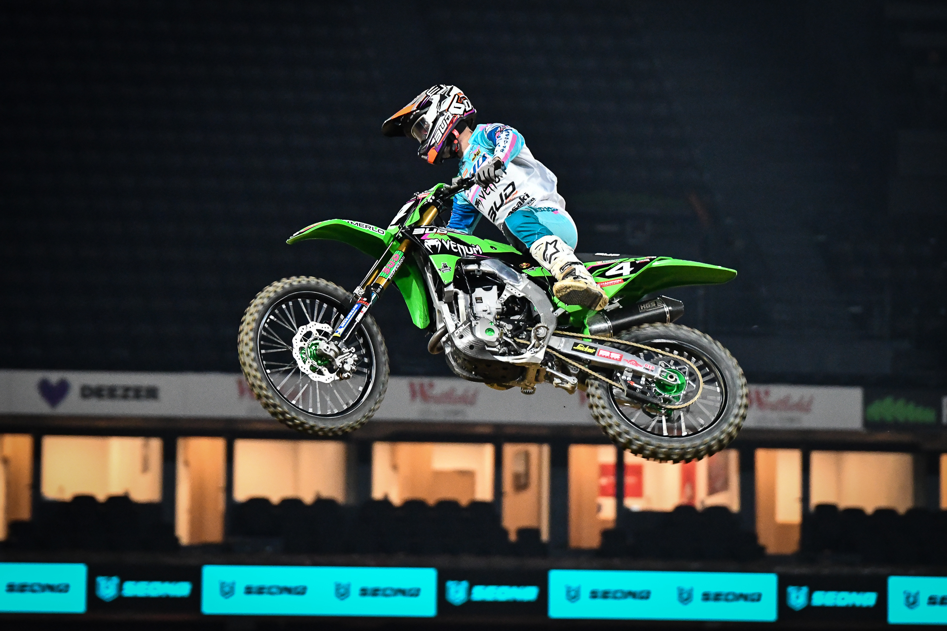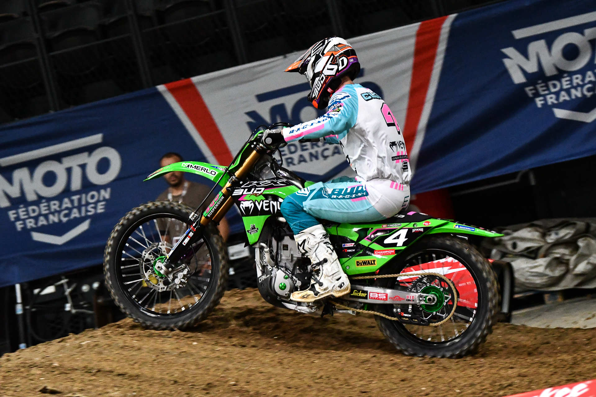 Il y avait deux Australiens au sein du team Bud Racing Kawasaki au Supercross de Paris ce week-end: Jake Cannon et Luke Clout. Si le premier est déjà sous contrat avec la structure Française pour évoluer sur l’Europe 250, le second a fait un détour par la capitale – et une redescente en 250 – pour tenter d’aller chercher le titre de Prince of Paris. Vainqueur de 4 des 6 manches SX2 du week-end, un accrochage au départ du second débat du dimanche verra ses espoirs s’envoler. Micro.