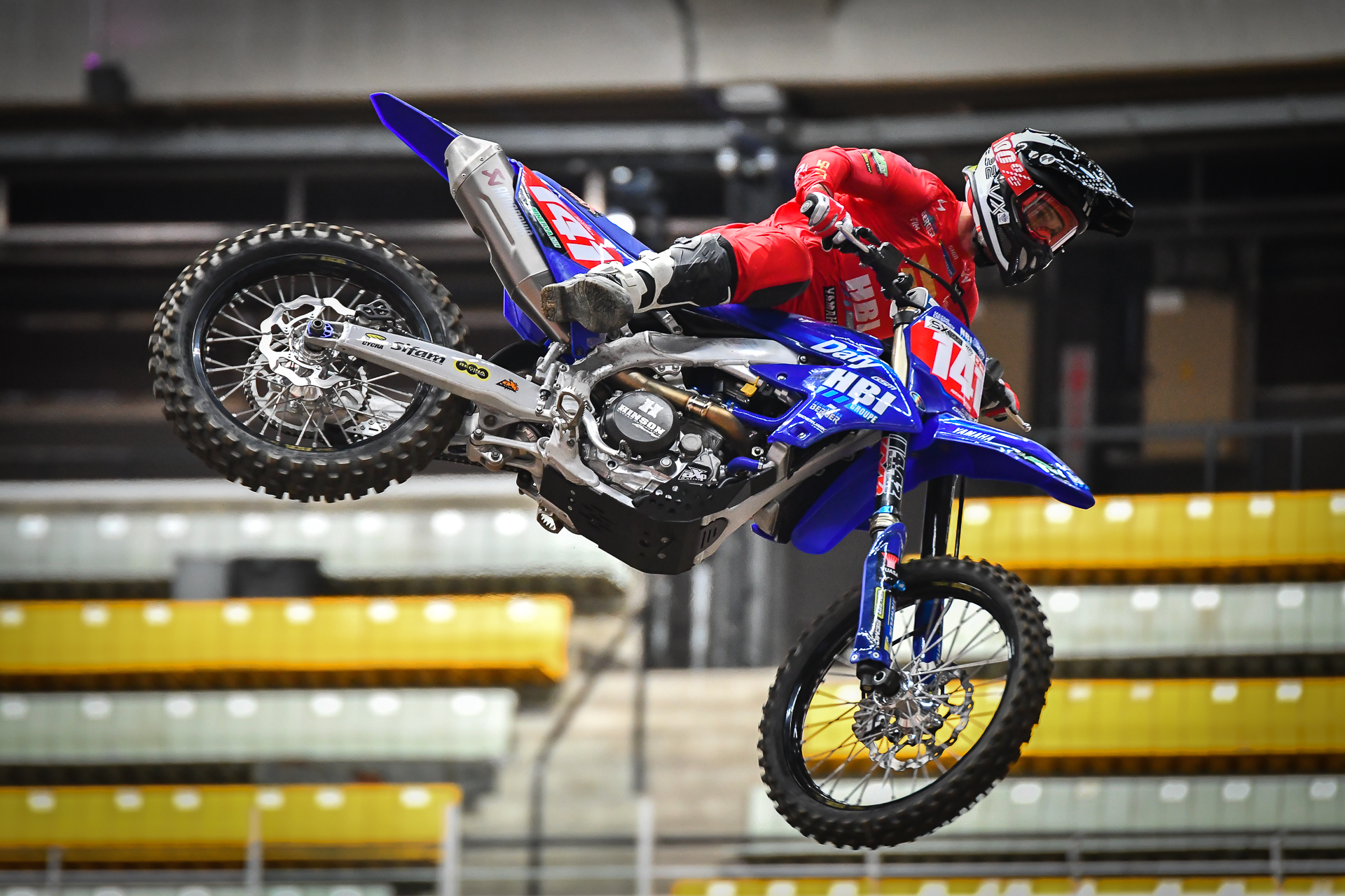 Le week-end dernier, j’étais repassé en 250 pour le World Supercross. Je n’ai pas trop roulé en 450, et j’ai manqué un peu de confiance dans les whoops. Je n’ai pas réussi à trop me lâcher ce week-end. C’est pour ça que dans la dernière finale, j’ai sauté dans les whoops ; comme ça, ça allait beaucoup mieux.