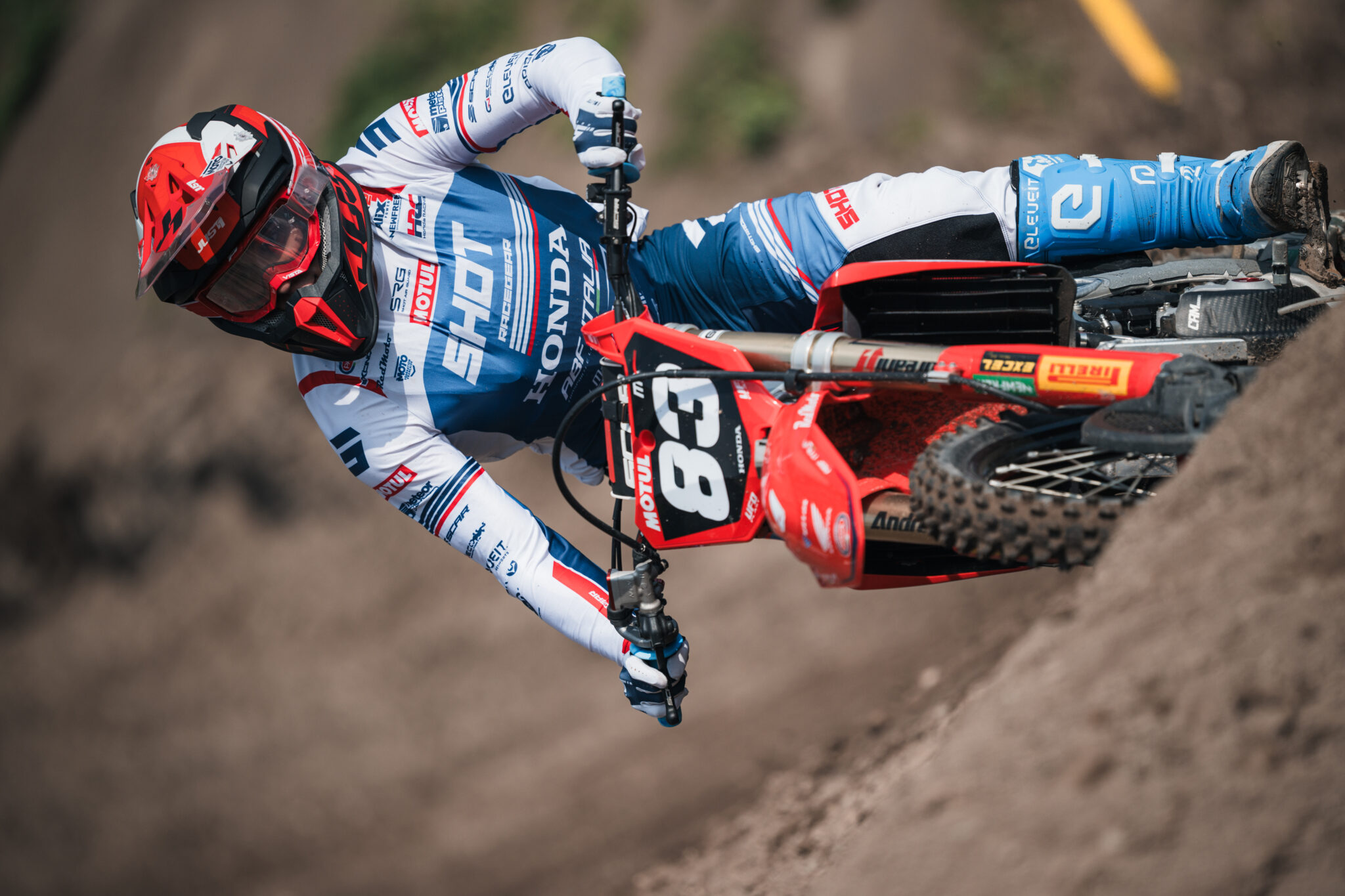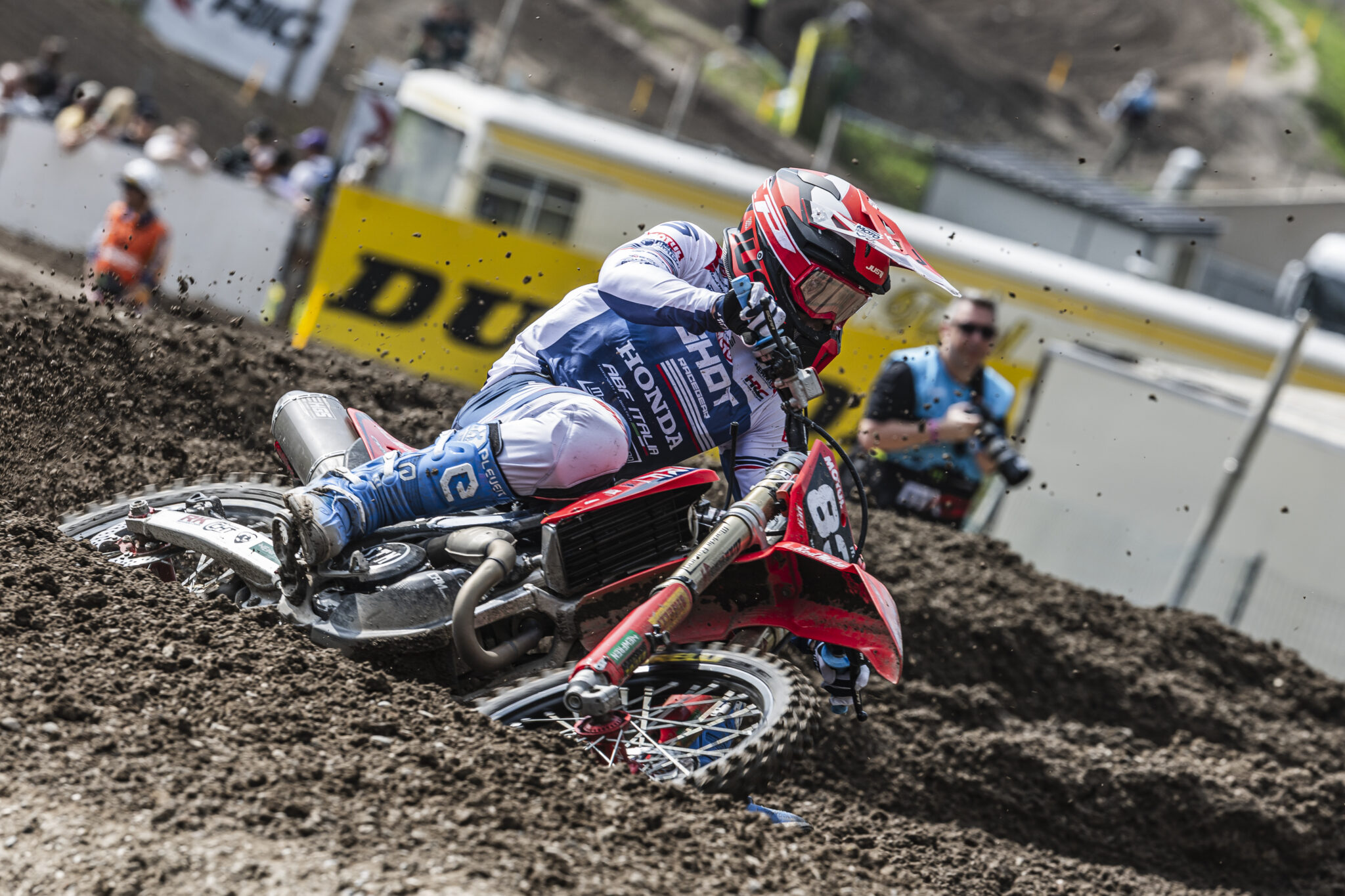 Tout s’est passé très vite pour Maxime Grau ces dernières semaines. Signé à la dernière minute par le team Maddii Racing Honda pour disputer la saison de mondial MX2 sur la 250 CR-F, le pilote français est incontestablement en train de monter en puissance, GP après GP. Septième de la première manche MX2 à Trentino ce dimanche — son meilleur résultat dans la catégorie — Maxime a pris en chasse Sacha Coenen au départ de la seconde manche avant d’être contraint à l’abandon. Le résultat final (13e) mis de côté, Maxime a de quoi quitter l’Italie avec le sourire. Rendez-vous pris au Grand Prix de France à Lacapelle-Marival. Micro.