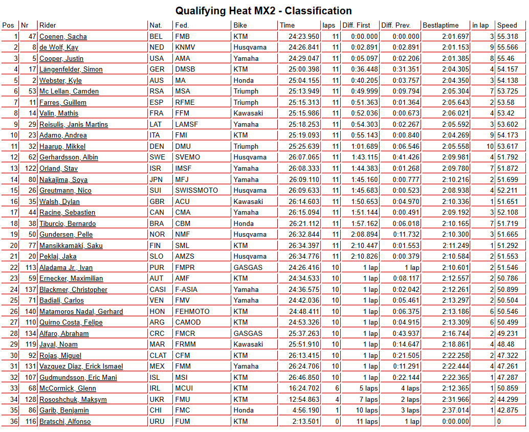 Manche qualificative MX2