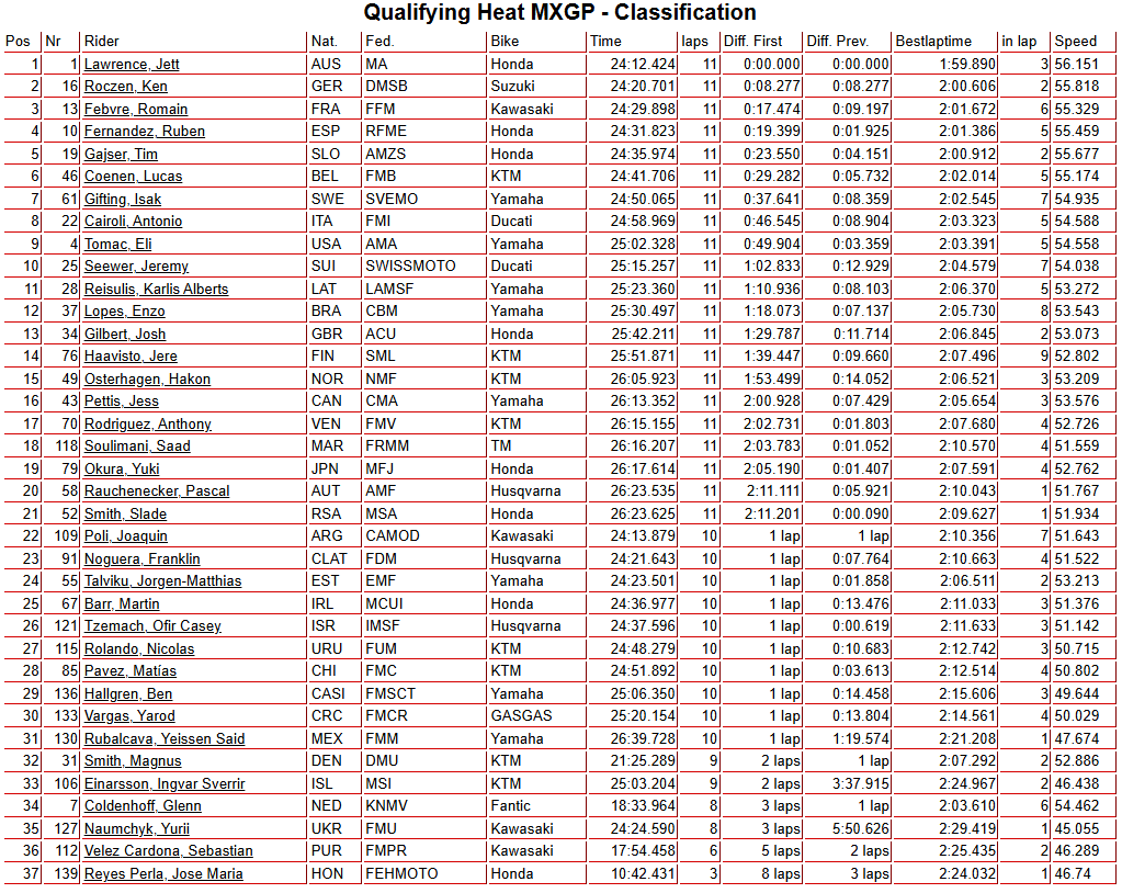 Manche qualificative MXGP