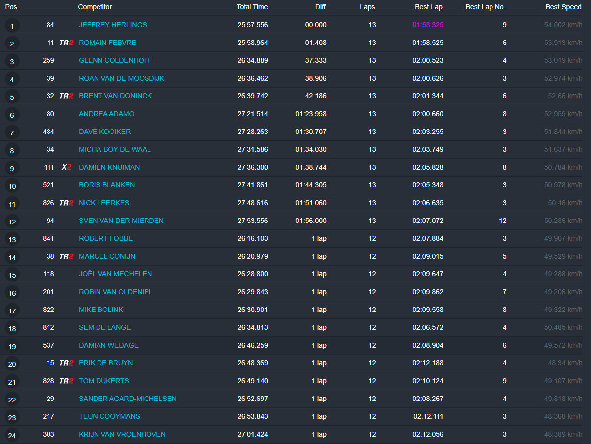 À la suite de cet incident, l’épreuve n’a pas été relancée. Toutes nos pensées vont à Ivano Van Erp, 20 ans, ainsi qu’à sa famille.