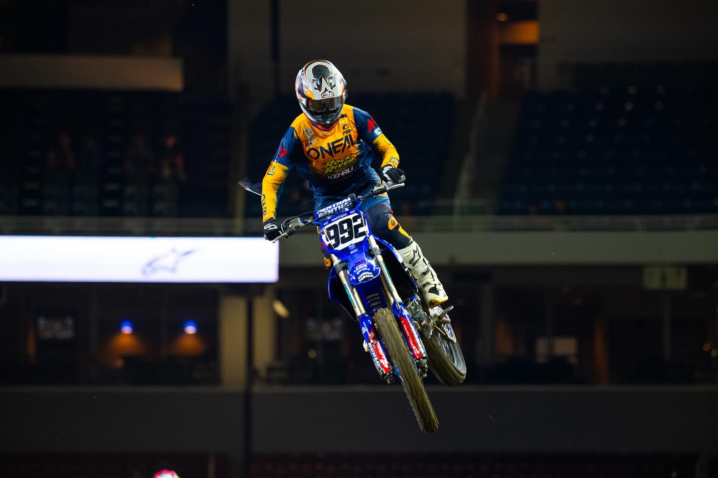 Neuvième du championnat du monde MXGP en 2023 et 2024, Valentin Guillod s’était retrouvé sans guidon pour disputer le mondial en 2025. Il abordait donc la saison en tant que pilote privé, signant quelques coups d’éclat avant de se blesser lors de son « home GP », en Suisse. Une clavicule dans le sac, une période de réflexion, et voilà que Valentin avait décidé de tenter sa chance en prenant son baluchon pour partir à la poursuite de l’aventure américaine. Il avait fini par faire ses débuts sur l’outdoor 450 durant l’été, avec le soutien du team Rock River Yamaha.
