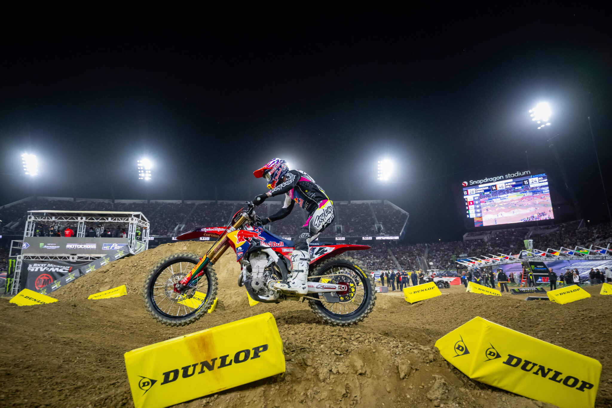« Pas une mauvaise soirée à San Diego, pour être honnête. On a fait des progrès sur la moto ce week-end », explique Dylan Ferrandis. « C’est toujours compliqué de reproduire les conditions de course à l’entraînement, donc je suis venu à San Diego en me disant que je devais être prêt à m’adapter, et c’est ce que j’ai fait. On a effectué quelques ajustements sur la moto entre chaque séance, et je dirais qu’on a fait de gros progrès dans l’ensemble. La moto était vraiment au point pour la finale. J’étais sixième, puis j’ai été doublé par un pilote, et j’ai tenté quelque chose de différent dans les whoops et je suis tombé. J’ai perdu quelques positions et j’ai terminé neuvième. L’équipe est en confiance avec le potentiel de la moto, et je pense qu’on pourra continuer à progresser cette semaine pour revenir encore plus forts à Anaheim 2. »