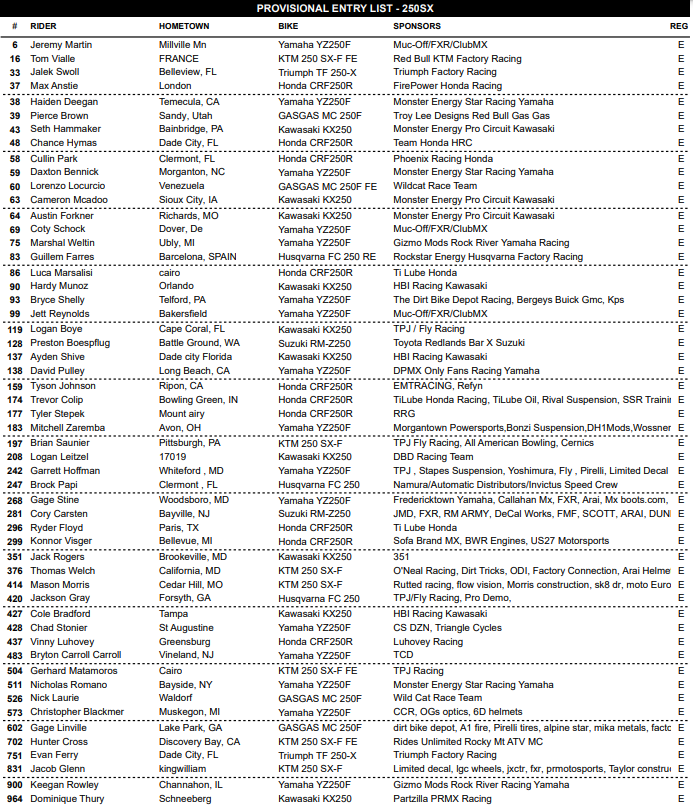 Débarqué de l’équipe ClubMX Yamaha dans un feuilleton pour le moins dramatique et ce, afin de tenter sa chance au sein de l’équipe Star Racing Yamaha – son premier contract factory – le Brésilien Enzo Lopes a été en proie à des problèmes physiques – perte de sensation dans une main – à l’intersaison. Il se dit qu’Enzo viendrait seulement de reprendre l’entraînement; il ne figure d’ailleurs pas sur la liste des pilotes engagés pour le Supercross de Detroit à cette heure-ci, bien que celle ci ne soit que provisoire.