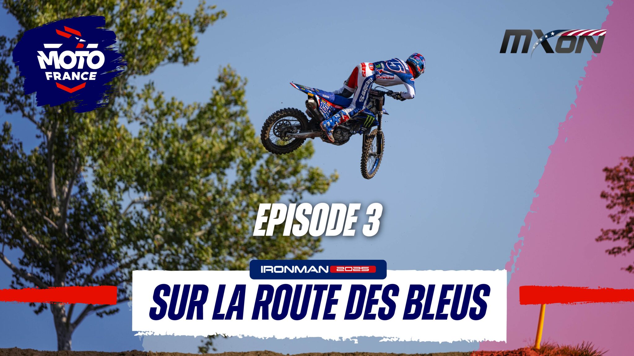 L’épisode 3 de la web-série « Sur la Route des Bleus » retrace la première journée de compétition sur le circuit d’Ironman, aux États-Unis. Sébastien Poirier, Président de la Fédération Française de Motocyclisme, a tenu à partager quelques instants avec les Bleus en vue de ce week-end animé. Nos pilotes Romain Febvre (MXGP), Mathis Valin (MX2) et Maxime Renaux (OPEN) ont pu poser leur roues sur la terre américaine, accompagnés de leurs entraîneurs, pour une prise de repères décisive. Après les essais libres du matin, les manches qualificatives de l’après-midi ont permis à l’Équipe de France de se positionner sixième pour l’entrée en grille. Les bases sont posées, la tension monte : aujourd’hui, place aux courses !