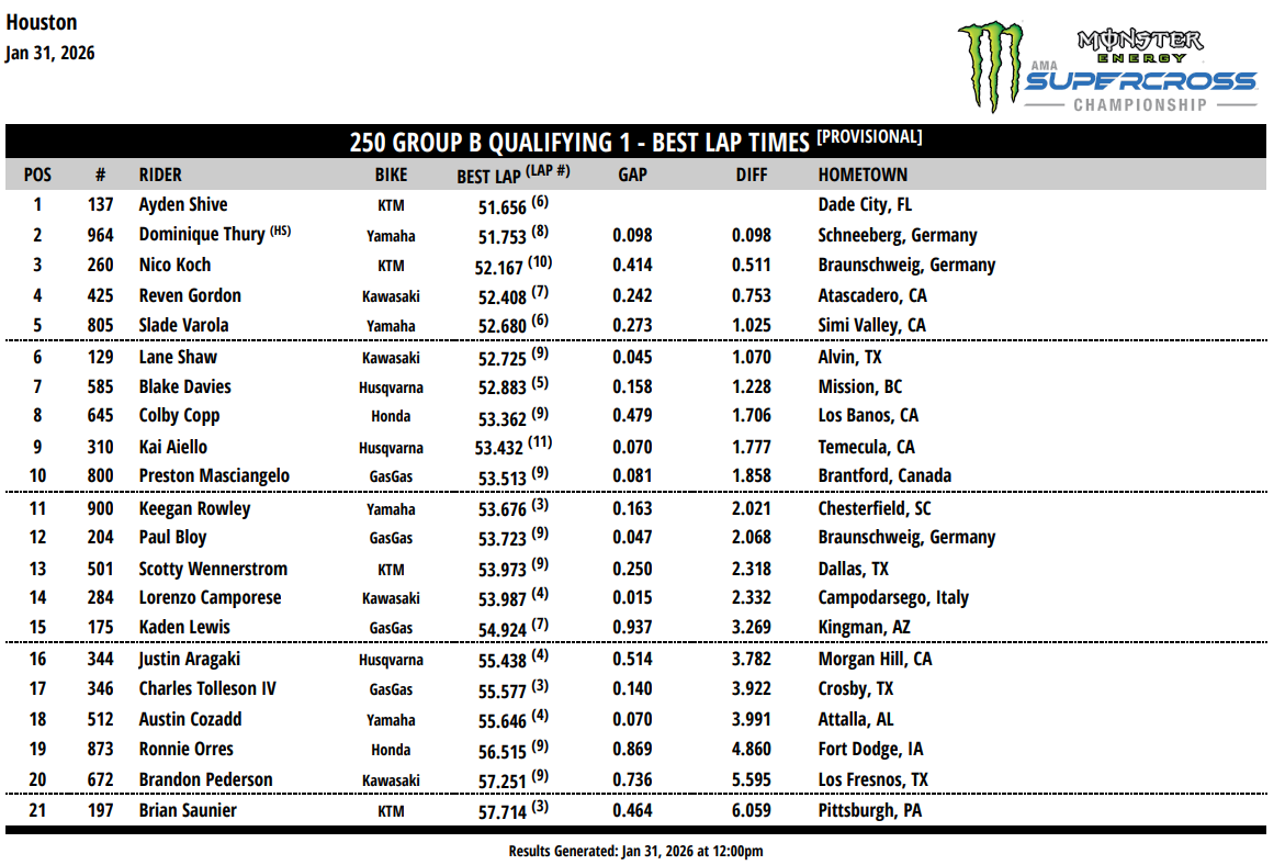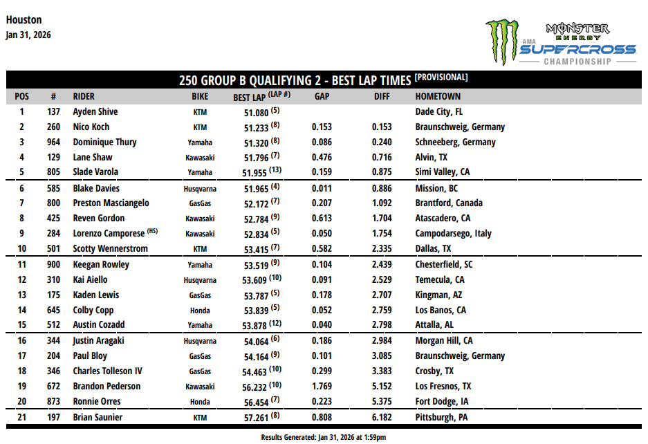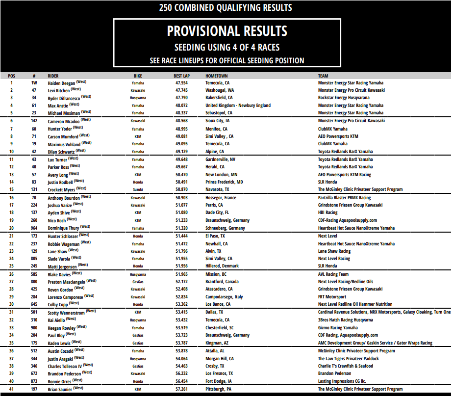 Combiné 250 provisoire – Session 1
