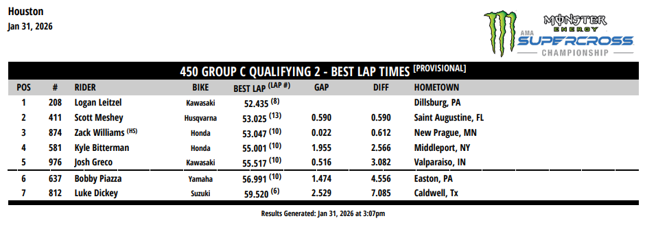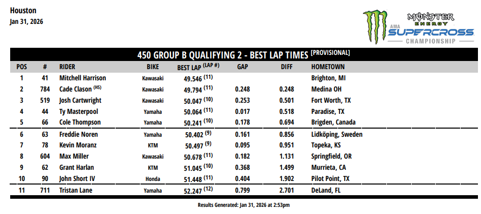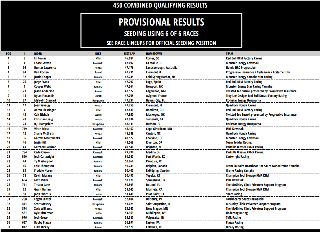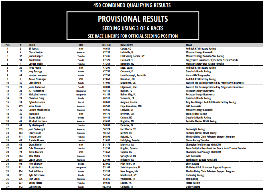 Résultats essais qualificatifs 450