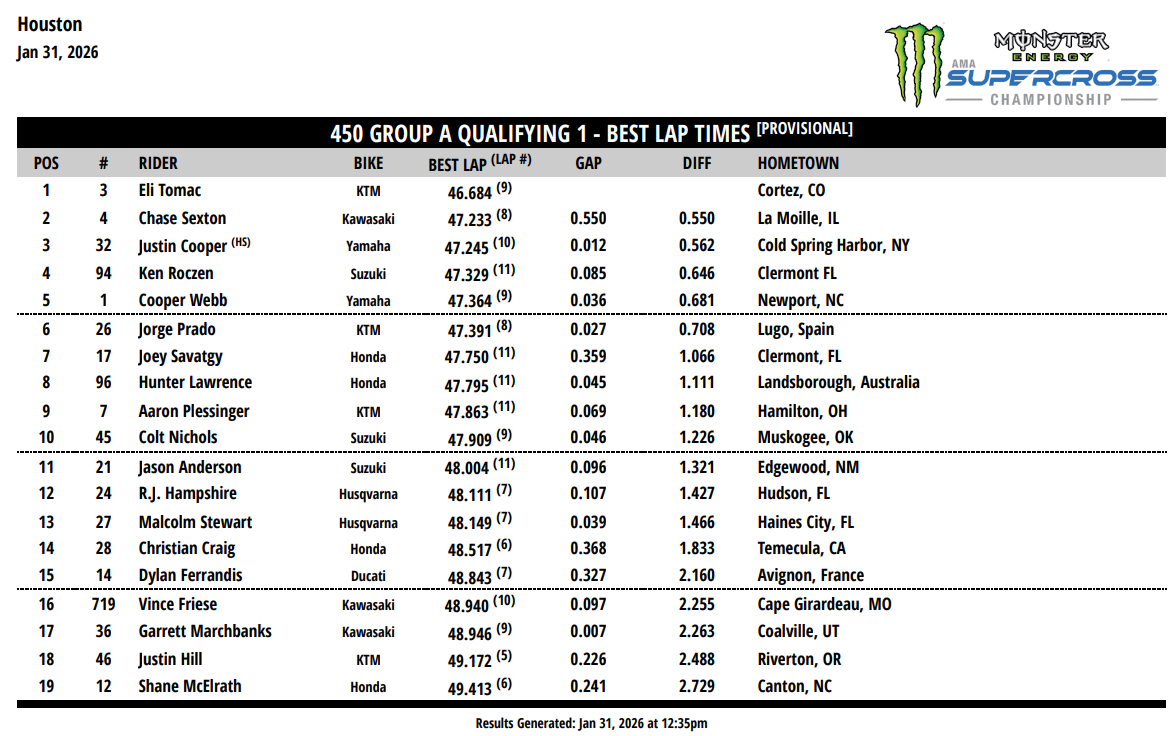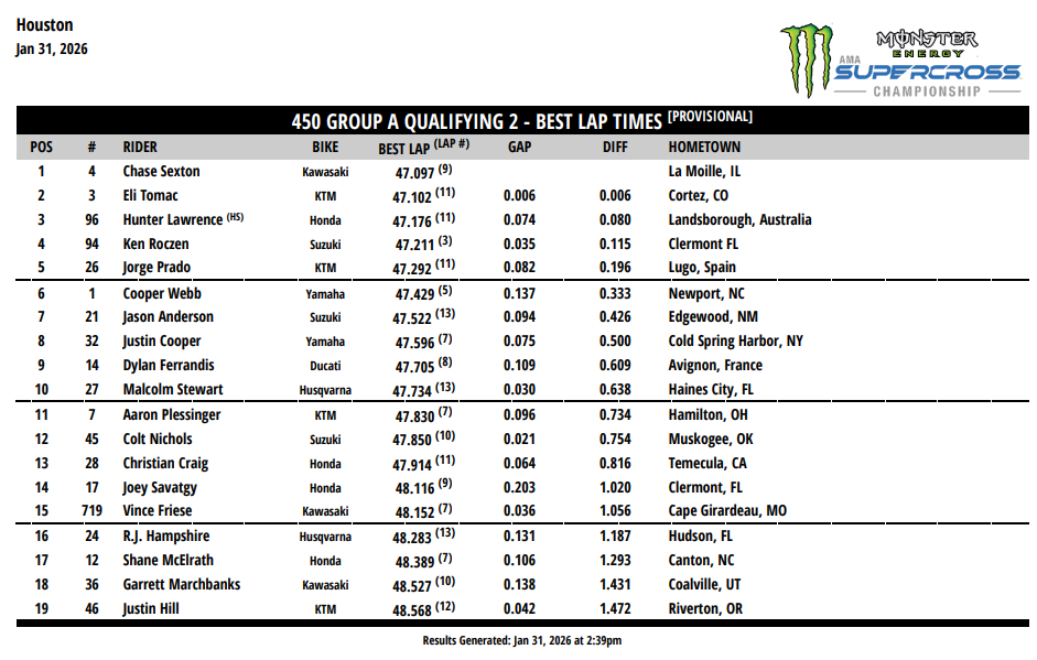 Retrouvez les résultats des séances qualificatives ci-dessous.