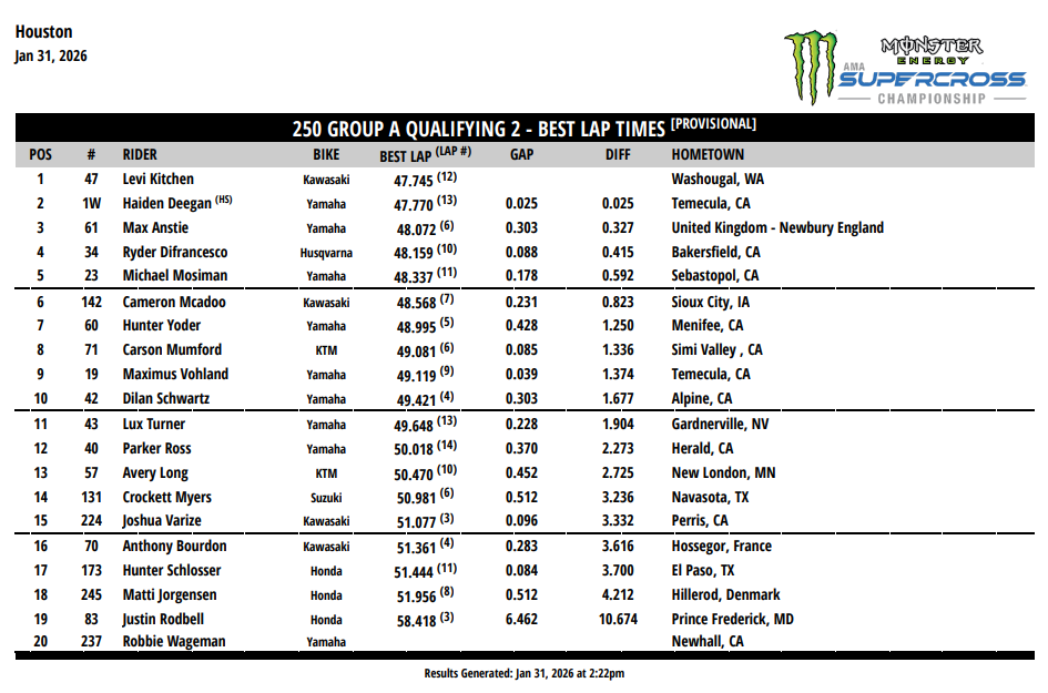 Haiden Deegan a remporté les deux dernières épreuves en 250 et augmenté son avance au championnat tandis qu’en 450, Chase Sexton a stoppé l’élan d’Eli Tomac en s’imposant à Anaheim 2. Partir devant — trois fois — sera l’une des clés pour jouer la victoire lors de cette première épreuve Triple Crown de la saison. Le week-end accueille également la seconde épreuve de la série SMX Next.