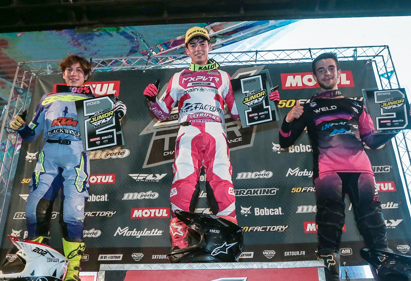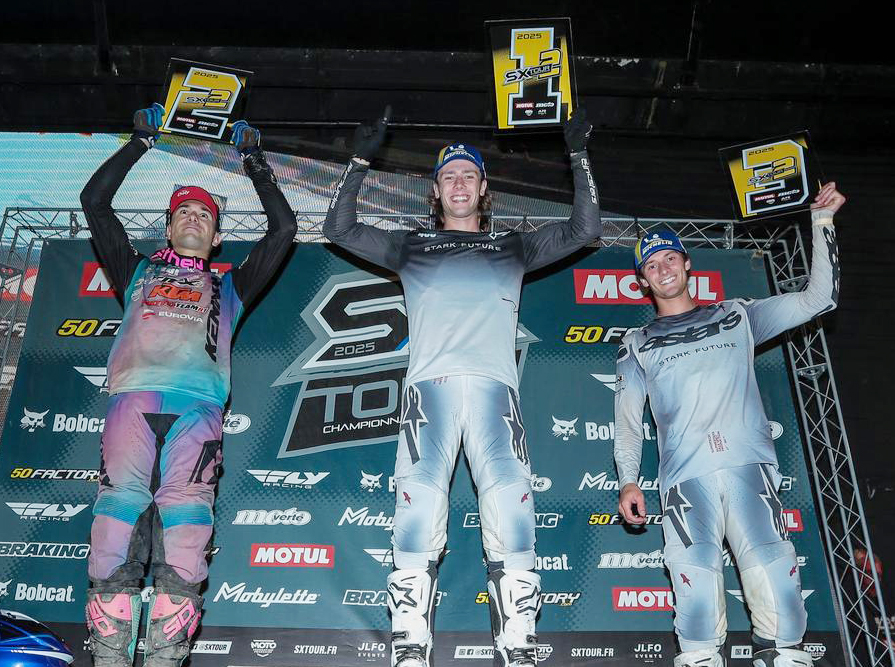 La lutte était de haute volée et le pilote bourguignon régalait son public en débordant Cédric Soubeyras à quatre tours de l’arrivée. Pendant ce temps, Anthony Bourdon était venu à bout de Jorge Zaragoza pour la troisième place avant de partir à la faute, et de voir voir tous ses efforts s’écrouler à deux tours de l’arrivée. Reparti retardé, il finira neuvième en lâchant beaucoup de points à ses adversaires. Jordi Tixier n’en demandait pas tant et profitait de l’incident pour s’emparer de la troisième place. Il était récompensé de ses efforts après une sérieuse blessure (cervicales) l’ayant écarté des circuits plusieurs mois en rejoignant Maxime Desprey et Cédric Soubeyras sur le podium de ce second round pour les pilotes de la catégorie SX1.