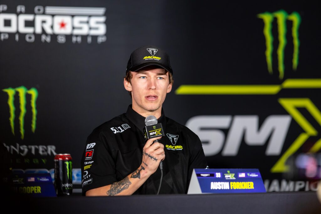 À l’aube d’une épreuve qui ne restera pas dans leur mémoire, le team Triumph Factory Racing a confirmé qu’Austin Forkner continuerait le reste de la saison de Supercross en catégorie reine, et donc aux côtés de Jordon Smith. Objectif : mettre l’accent sur le développement de la TF450-X dans la discipline et laisser Jalek Swoll faire sa part du job en 250.
