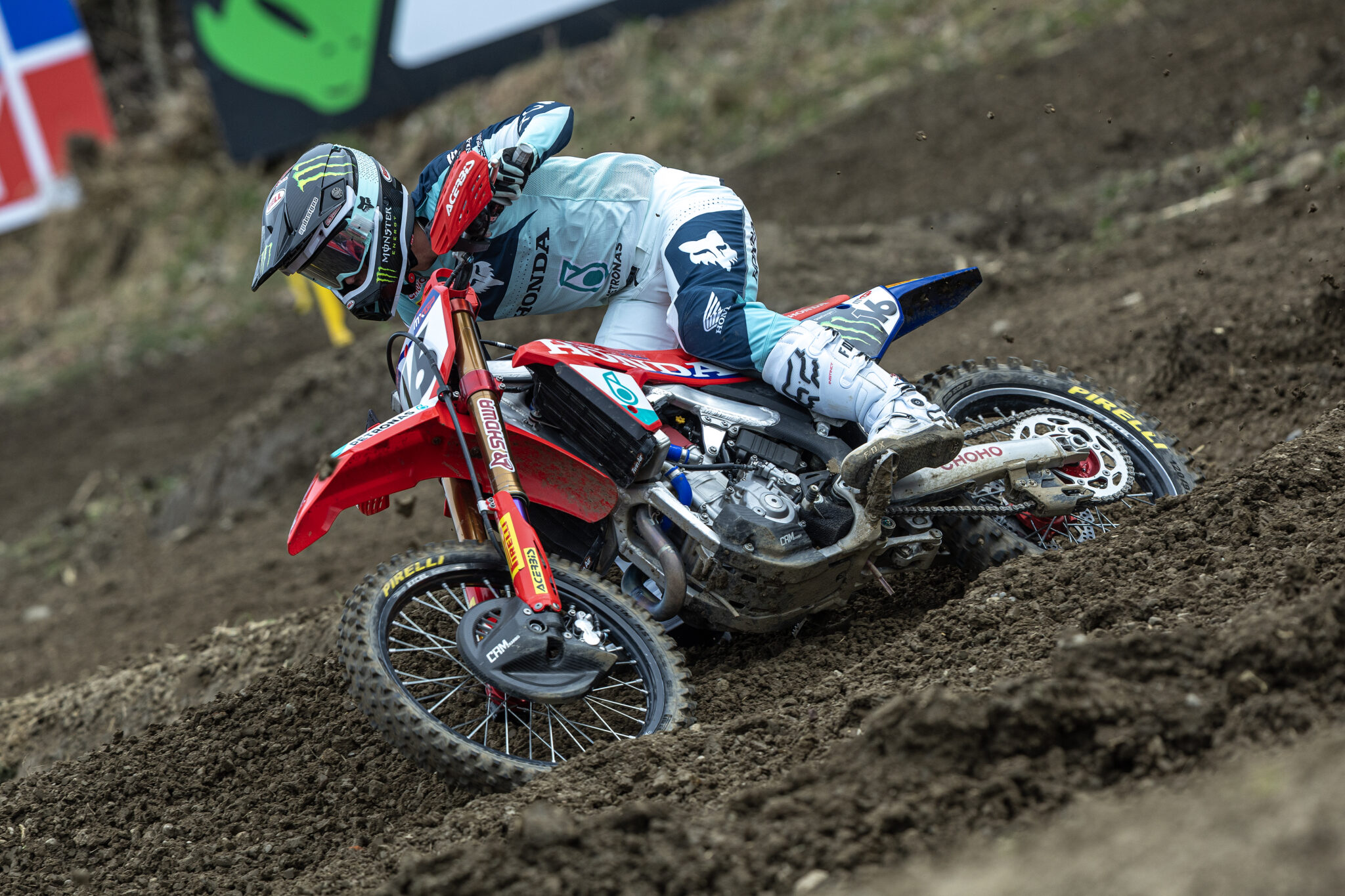 Après un dysfonctionnement de grille, le dernier holeshot du week-end reviendra finalement à Lucas Coenen devant Jeffrey Herlings, Pauls Jonass et Romain Febvre. Le pilote Letton s’écartera toutefois dès le premier tour, victime d’un problème mécanique.