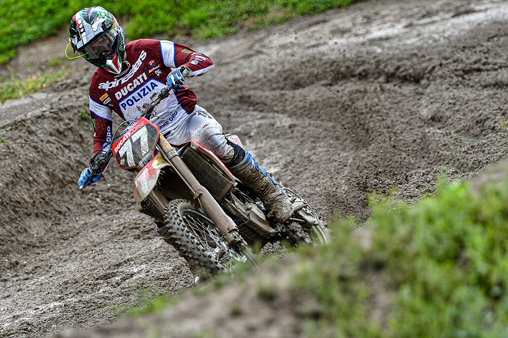 Sacré champion MX1 l’an dernier au guidon de la Desmo450MX – qui faisait alors ses premiers pas en compétition – Alessandro Lupino s’est engagé cette saison en MX2 sur le championnat italien, pour développer la toute nouvelle Desmo250MX. Une machine appelée à faire son entrée sur la scène mondiale et européenne dès l’an prochain.