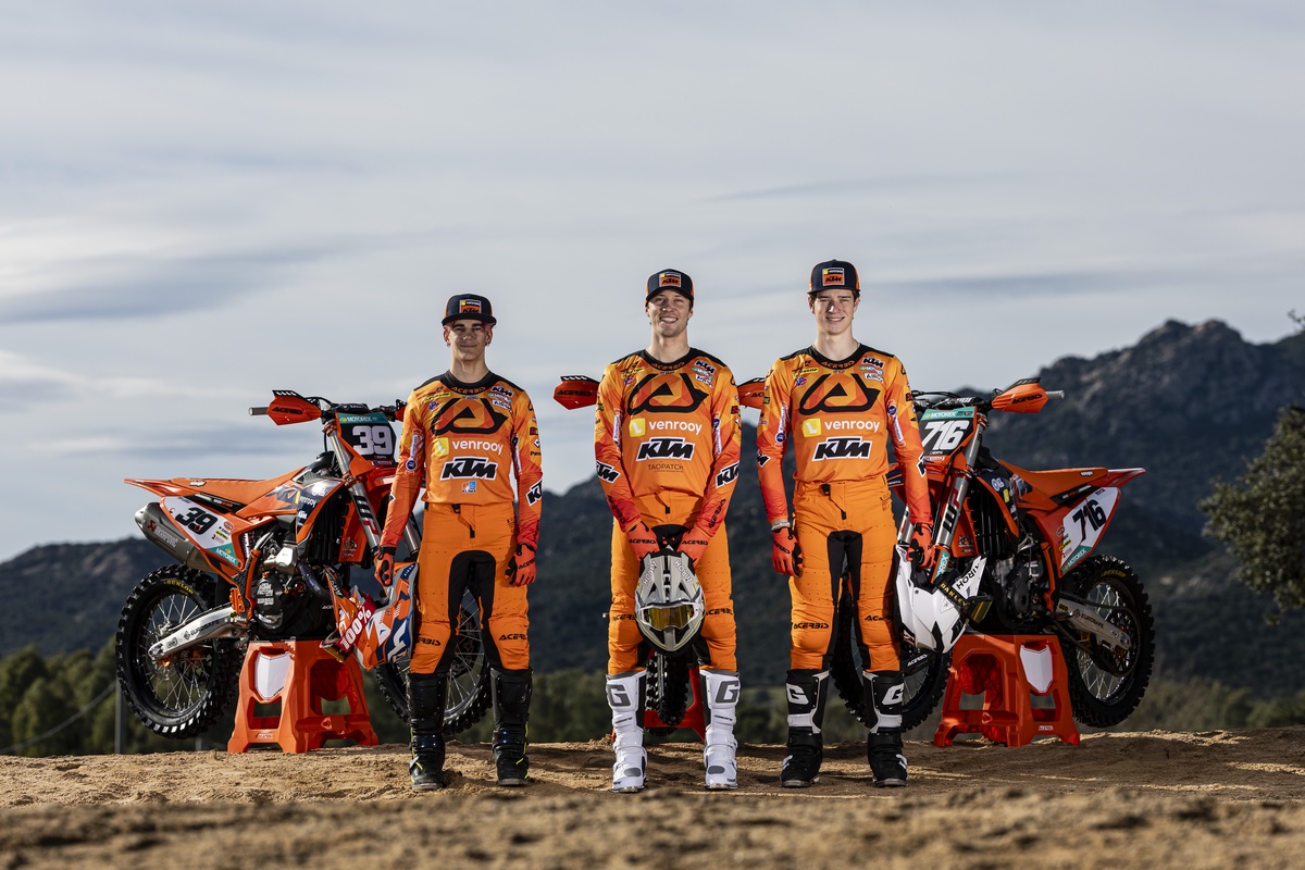 Pour 2026, Van Venrooy change son fusil d’épaule en alignant une composition d’équipe renouvelée à 100 %, avec des pilotes engagés dans trois catégories : EMX250, mondial MX2 et mondial MXGP.