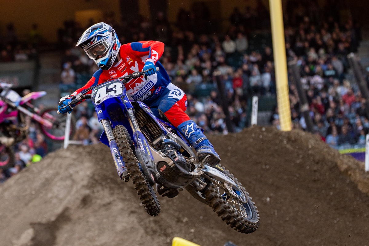 BarX Yamaha : La vitesse affichée par Dilan Schwartz depuis le début de la saison était une nouvelle fois au rendez-vous à Houston. Le chef de file de l’équipe a montré la voie lors des qualifications et a emmené ses coéquipiers vers un tir groupé, ramenant les 10e, 11e et 12e temps. Malheureusement, Dilan a lourdement chuté alors qu’il tentait d’améliorer son chrono, provoquant un drapeau rouge et l’interruption de la séance. Après avoir reçu des soins de la part de l’unité médicale mobile Alpinestars, il a été confirmé qu’il souffrait d’une côte cassée et de deux vertèbres fracturées, mettant un terme à ce qui était jusque-là un très bon début de saison. Heureusement, Dilan n’a jamais perdu ni les sensations dans ses membres, ni la mobilité, et son pronostic est très positif compte tenu de la gravité de ses blessures.