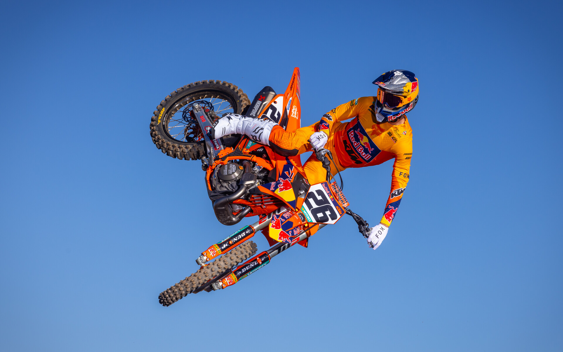 Entre entraînement en Californie et détour par la Bakers Factory, Jorge Prado ne chôme pas durant l’intersaison. Dans une semaine, le pilote Espagnol sera derrière la grille de départ à Anaheim 1, sous les couleurs de l’équipe Red Bull KTM. Encore peu expérimenté dans la discipline – il n’a pris part qu’à deux épreuves l’an dernier – le quadruple champion du monde demeure l’une des grandes interrogations de cette saison 2026. Une chose est sûre toutefois : loin de lever le pied, il est déterminé à tourner définitivement la page de 2025. Silence, ça tourne.